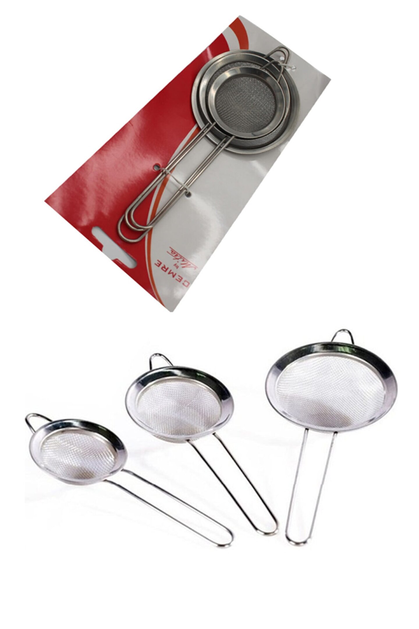 MİTRA 1909-21 3 LÜ SÜZGEÇ TAKIMI 3 Boy Çay süzgeci birinci sınıf paslanmaz malzemeden üretilmiştir. Ürün içeriği: 1 Adet Büyük boy (Çap: 10 cm Uzunluk: 21cm 1 Adet Orta Boy (Çap:8 cm Uzunluk: 19cm ) 1 Adet Küçük Boy (Çap: 7 cm Uzunluk: 18 cm ) Çay , Bitki , Süt , Pudra Şekeri , Kakao Süzme işlemlerinizi yapmanızı kolaylaştırır Kararma Yapmaz