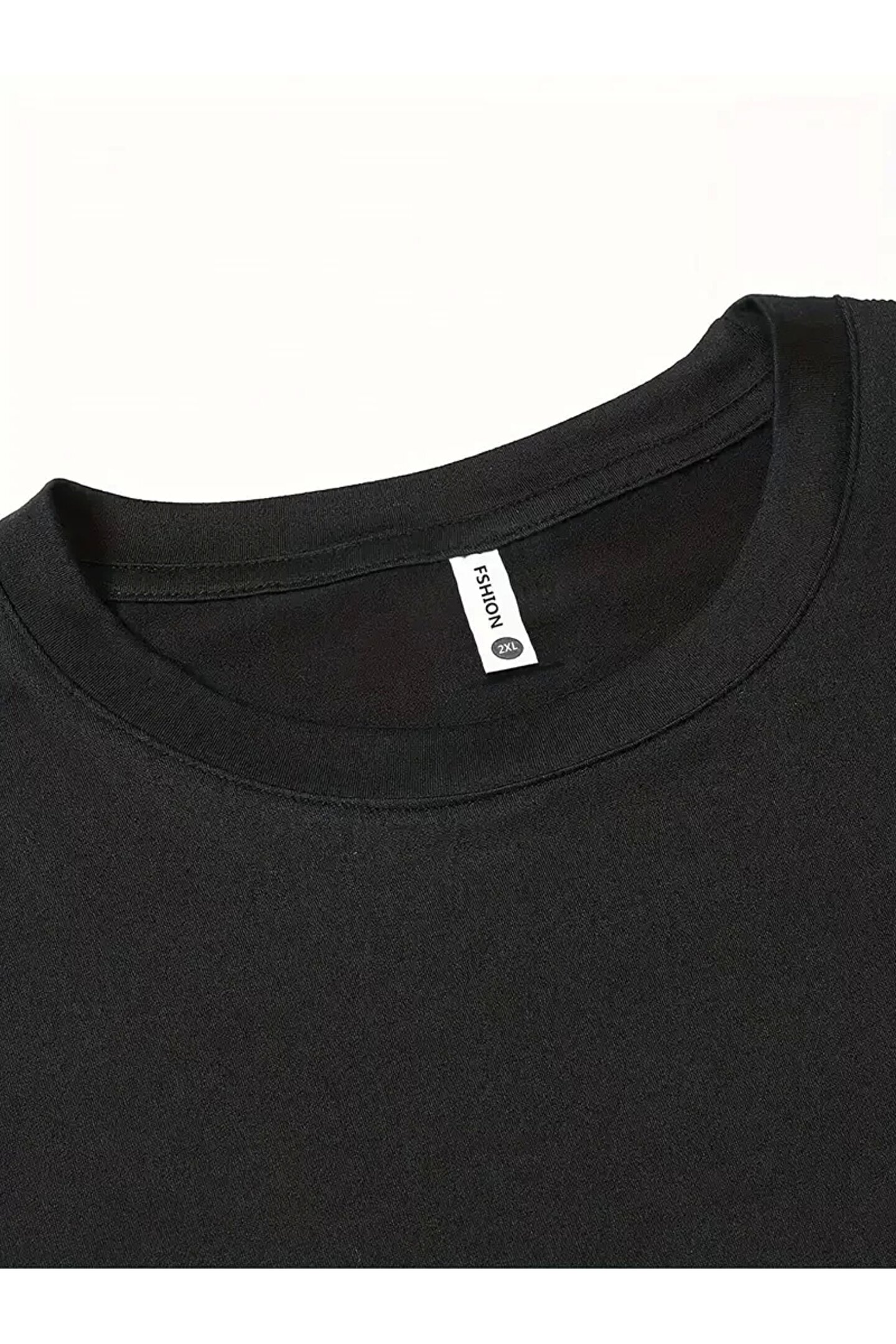MODA 201 Penye Compack Baskılı Oversize Bisiklet Yaka Kısa Kol T-shirt - Siyah