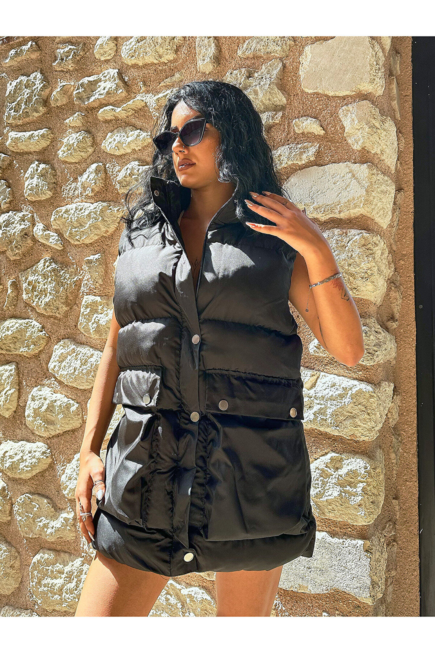 Su geçirmez özelliği sayesinde yağmurlu havalarda bile kuru kalmanızı sağlar.; ; Astarlı yapısı ile ekstra konfor sunar ve iç göstermez.; ; Orta kalınlıkta malzemeden üretilmiştir; ne çok ince ne de çok kalın olacak şekilde dengeli bir yapıya sahiptir.; ; Düz kesimiyle zamansız parçalar arasında yerini alırken her tür alt giysiyle uyum sağlar.; ; Sade deseniyle farklı aksesuarlarla kolayca kişiselleştirebilirsiniz.; ; Günlük ortamlarda rahatça tercih edebileceğiniz bu yelek, konforlu yapısıyla dikkat çeker.; ; Uzun boyu sayesinde vücut hatlarını nazikçe sararken rahat hareket etmenizi sağlar.