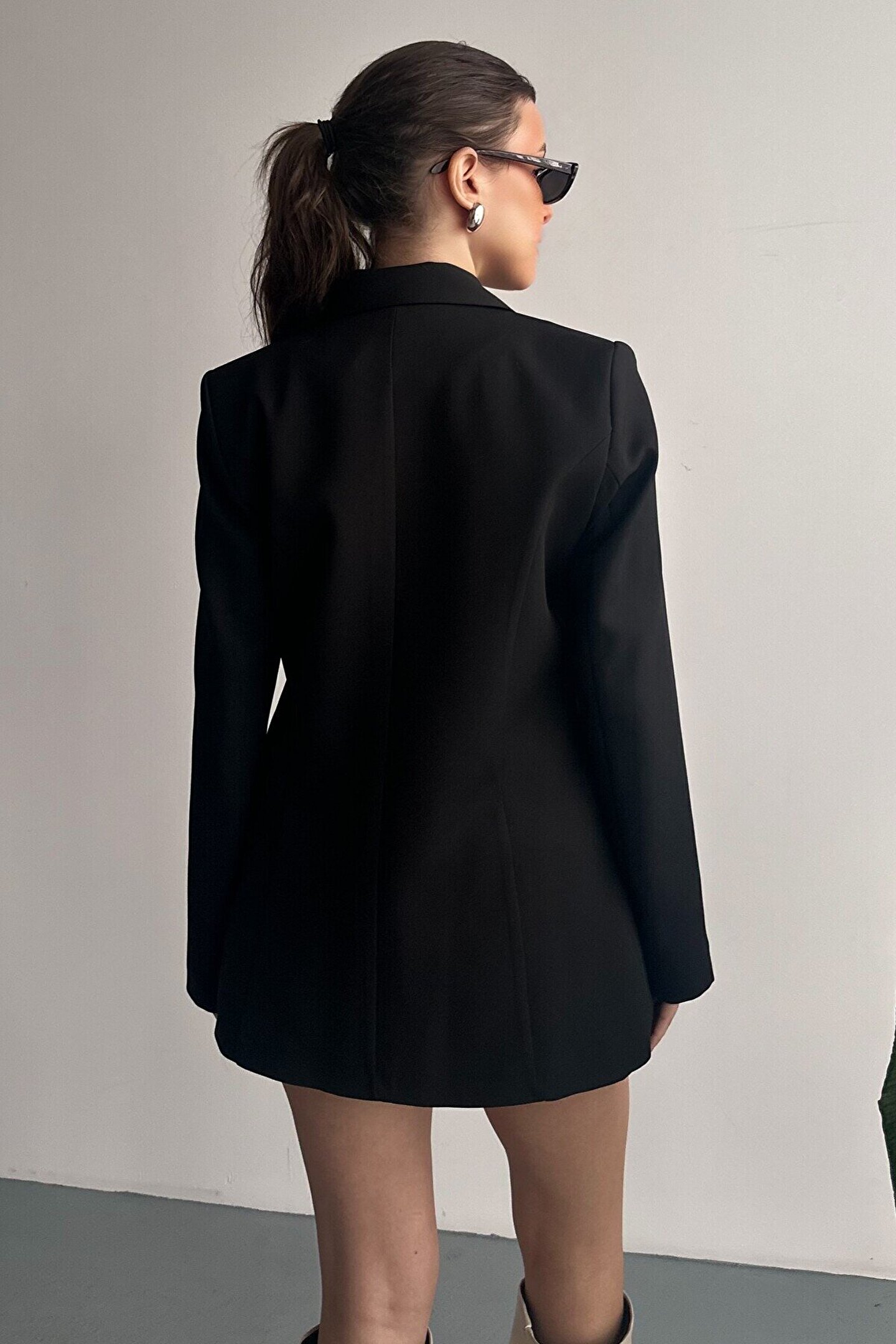 • Kruvaze düğme detayı sayesinde klasik blazer görünümünü modern bir duruşla tamamlar.