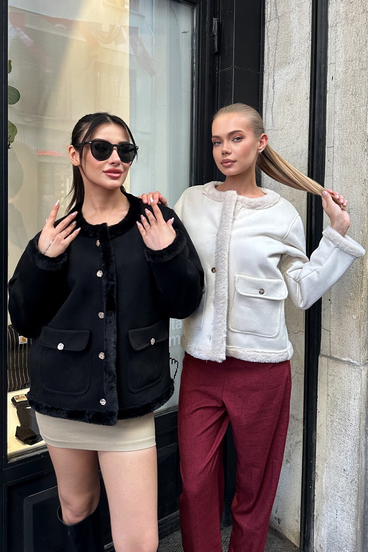 moda armanc Kadın İçi Suni Kürklü Süet Ceket - Yumuşak Dokulu, Düğmeli