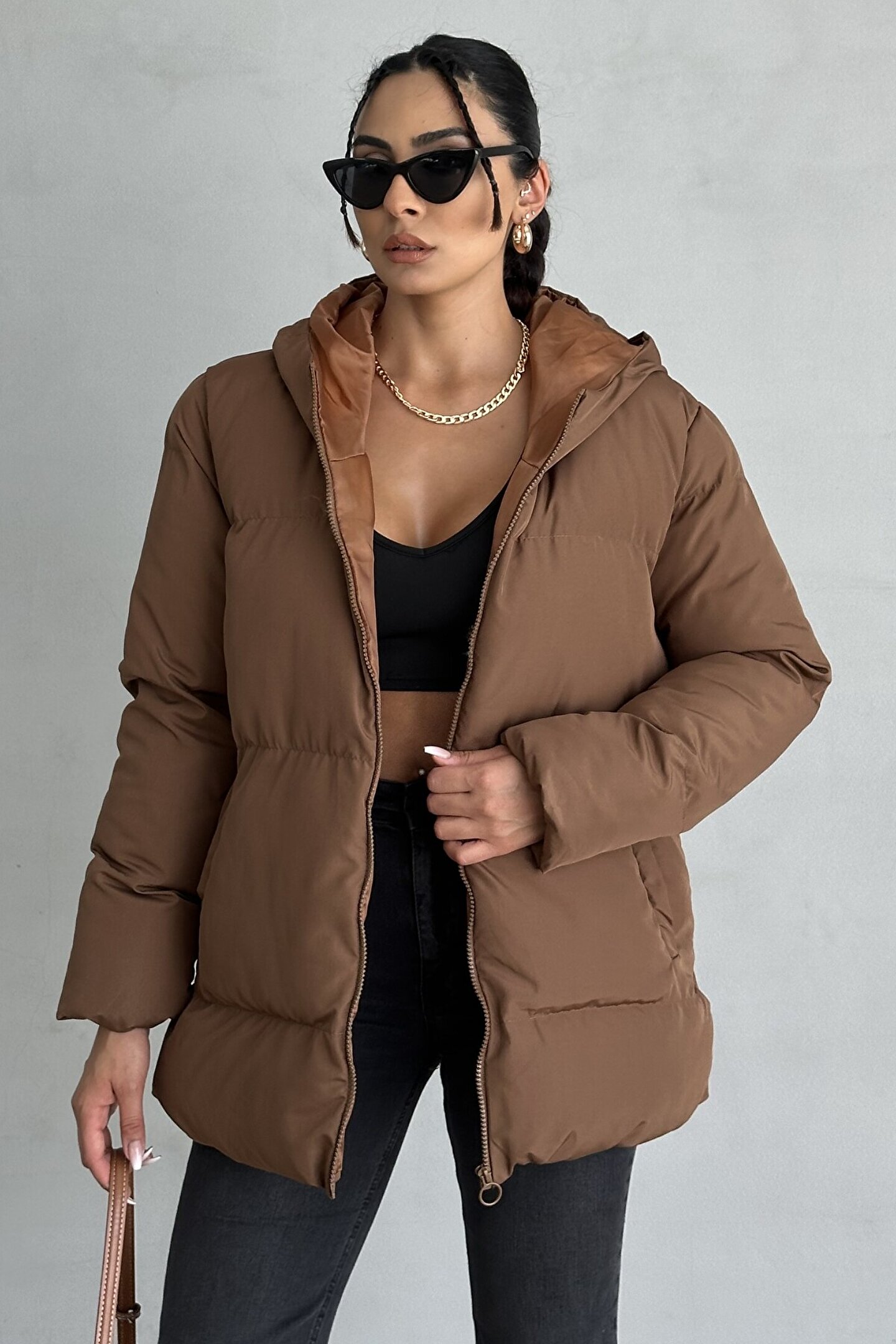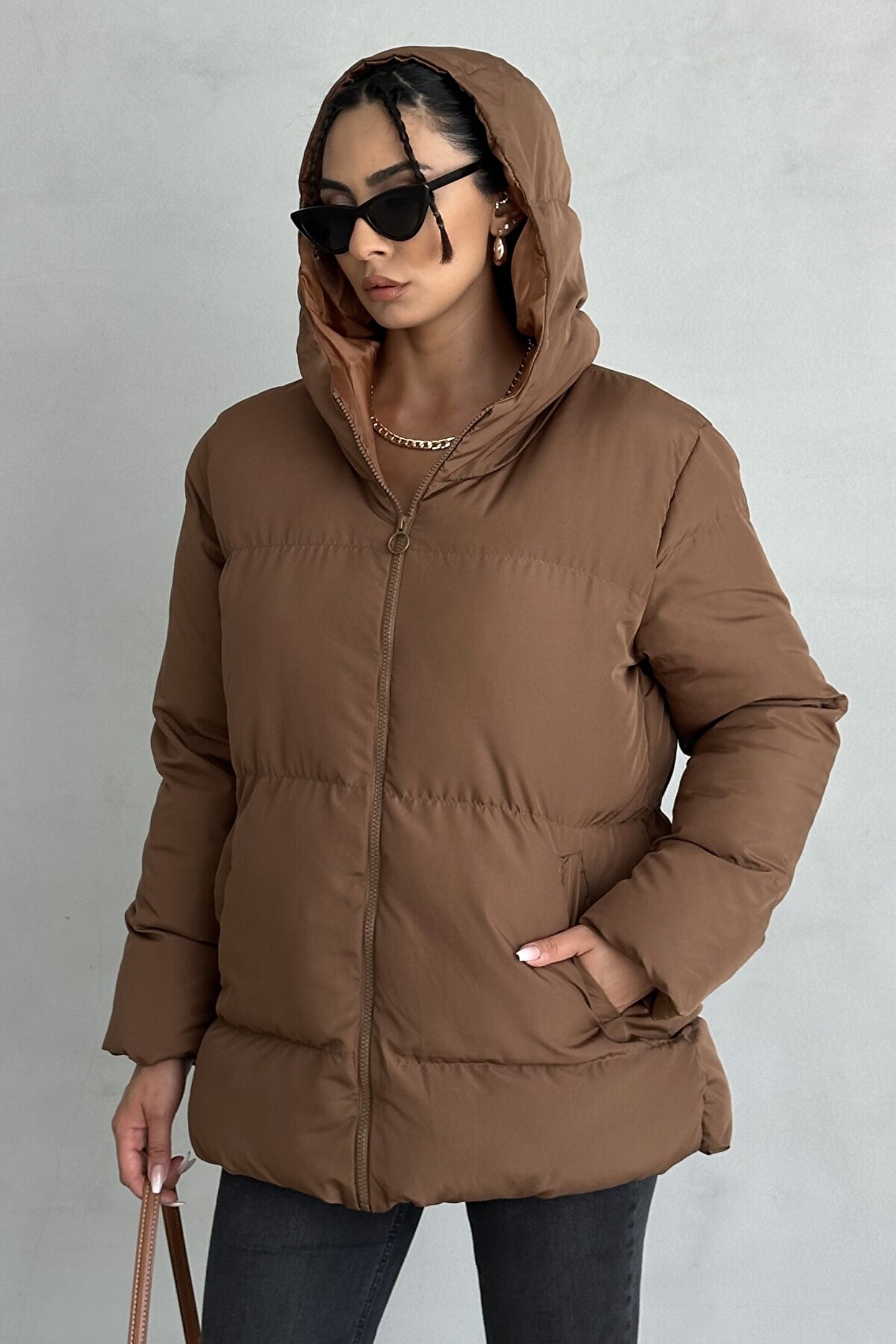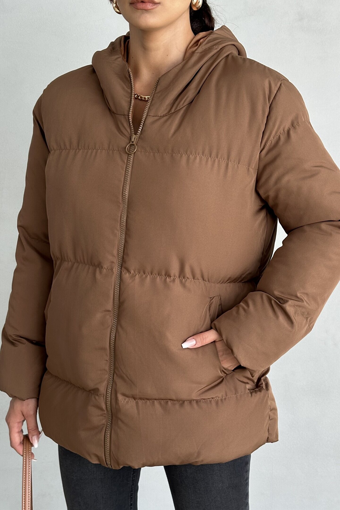 moda armanc Kadın Kahverengi Kapüşonlu Şişme Mont