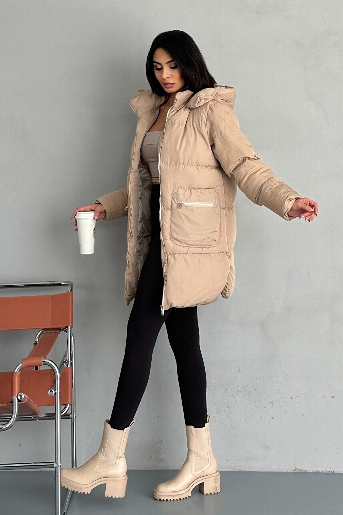 moda armanc Kadın Kapüşonlu Şişme Uzun Mont