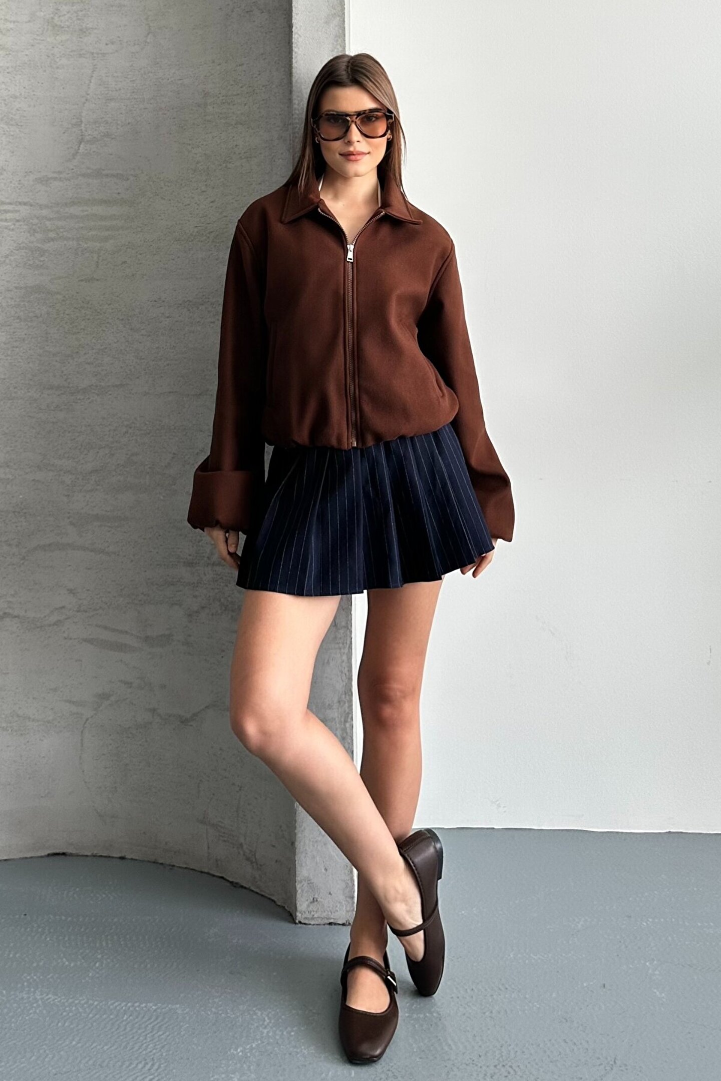• Lastikli etek ucu: Vücuda oturan, bomber ceket görünümü.