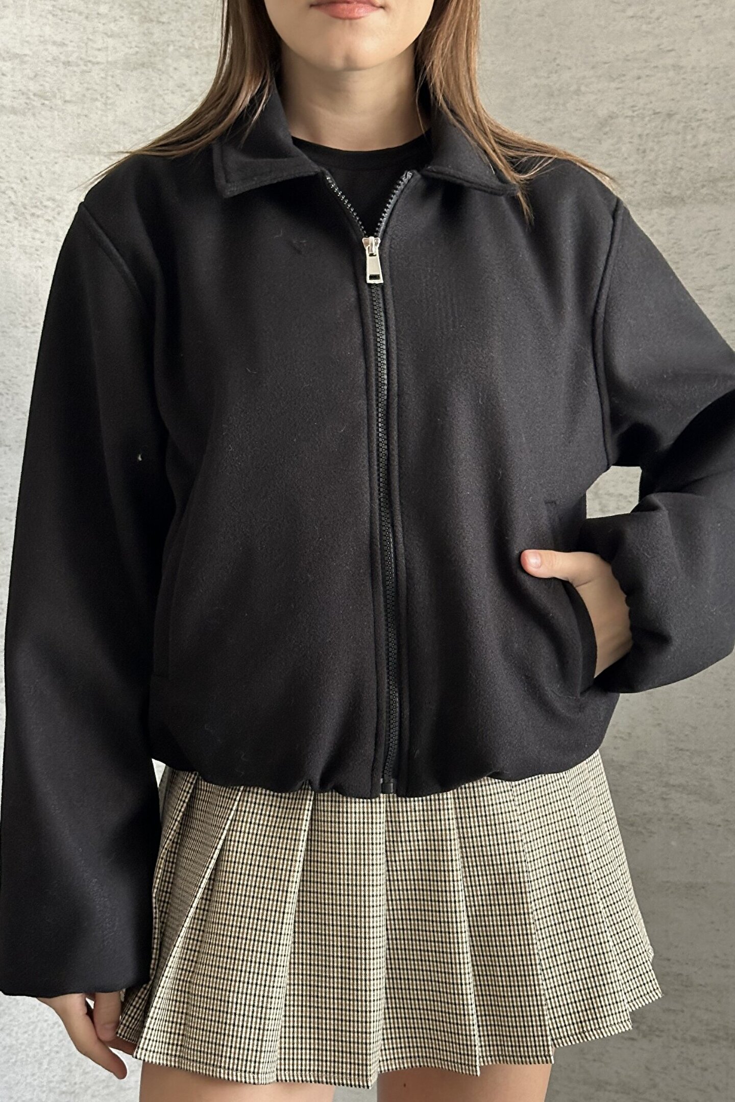 • Lastikli etek ucu: Vücuda oturan, bomber ceket görünümü.