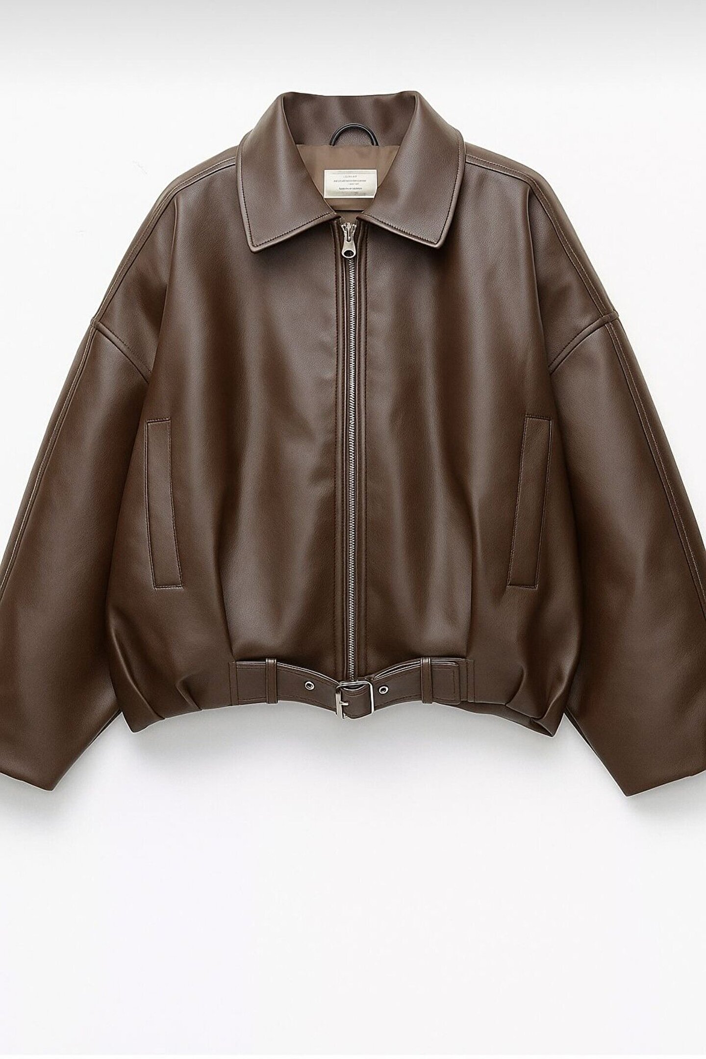 moda armanc Kadın Oversize Bomber Suni Deri Ceket | Yeni Sezon Kemerli Biker Ceket