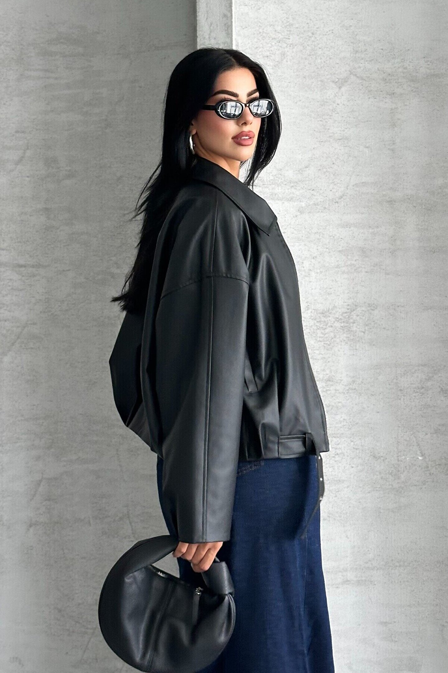 moda armanc Kadın Oversize Bomber Suni Deri Ceket | Yeni Sezon Kemerli Biker Ceket