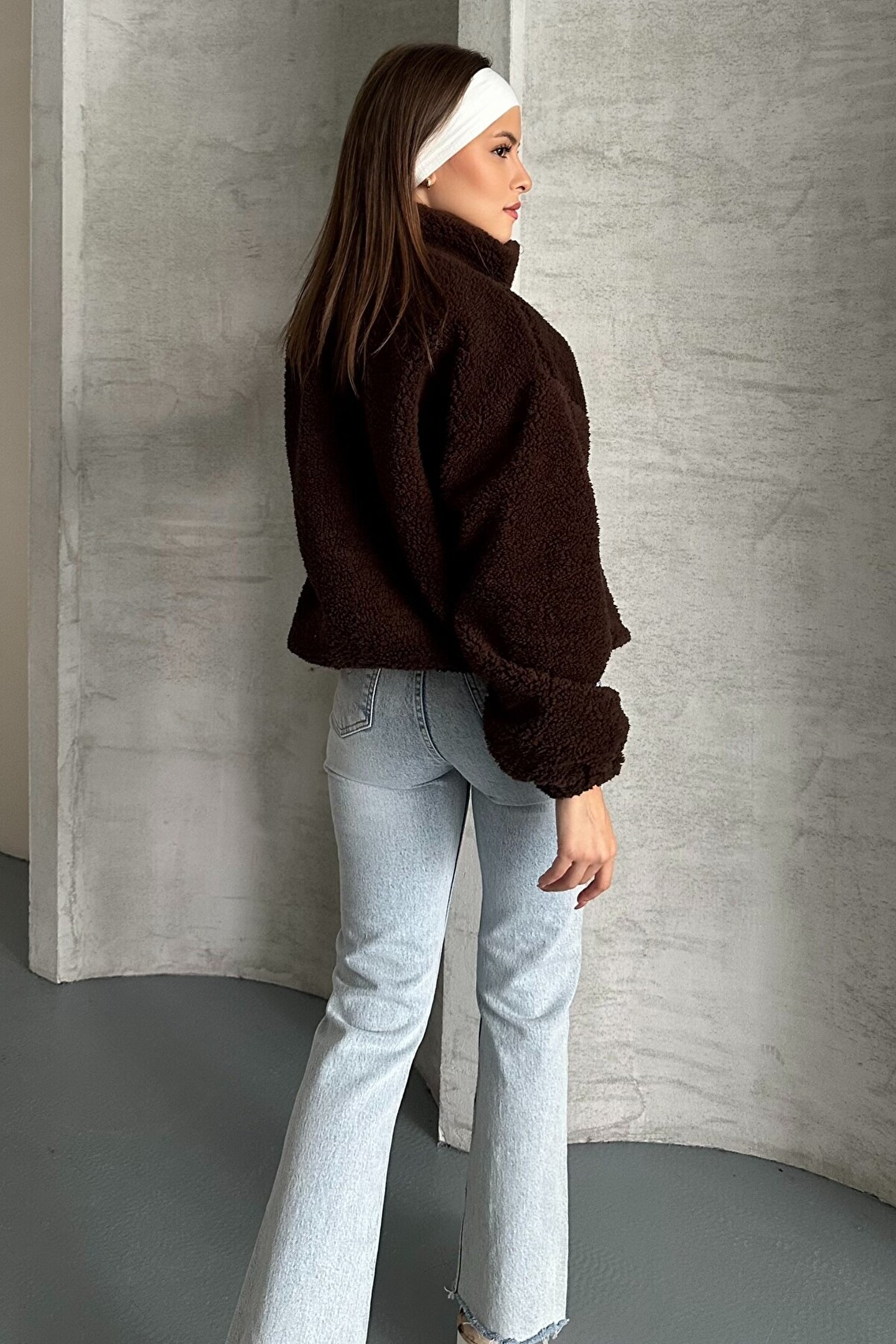 Günlük yürüyüşlerde, şehirde, kamp gezilerinde ya da hafta sonu kombininin yıldızı olacak bu kahverengi oversize peluş ceket, dolabının en çok giyilen parçası olmaya aday.