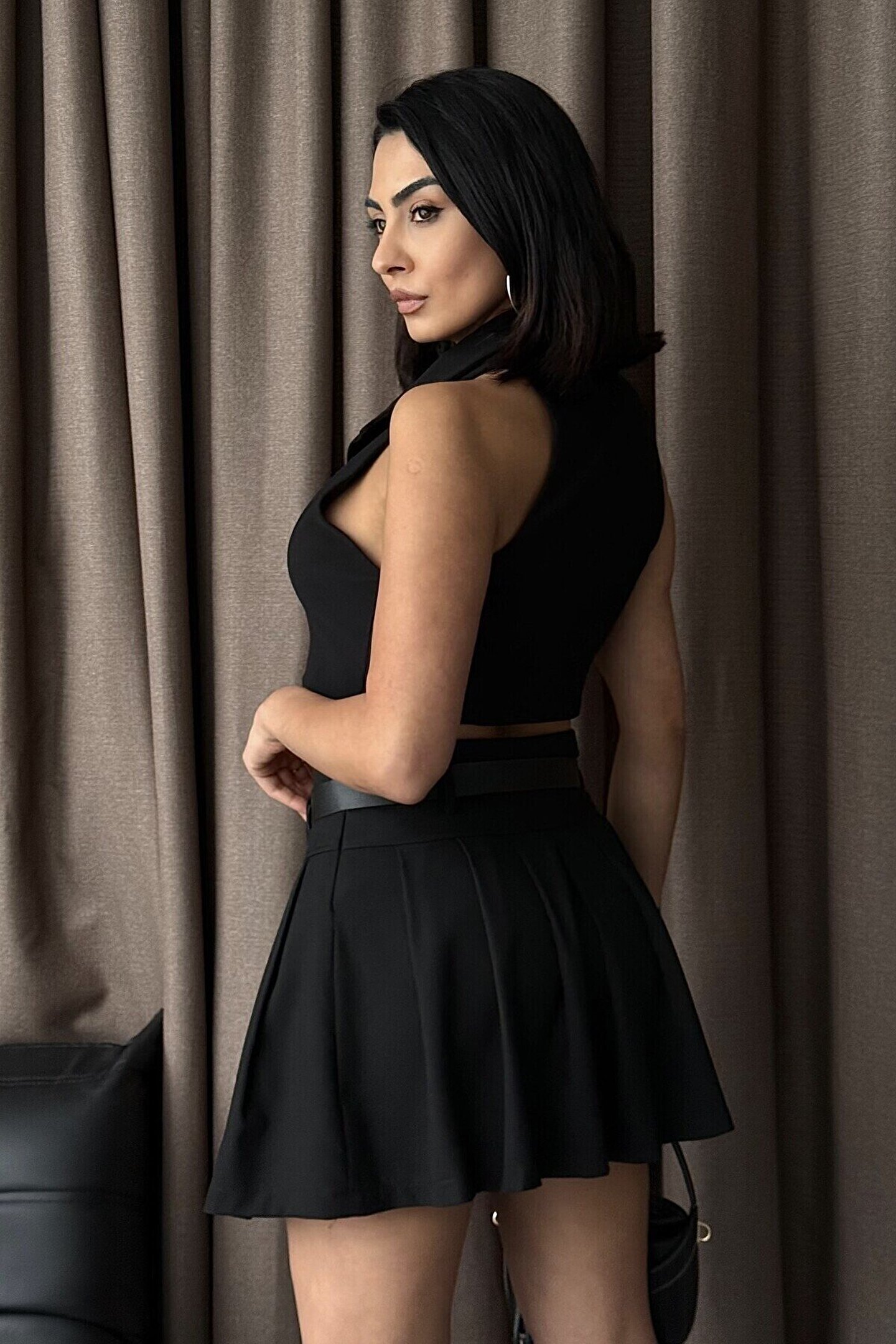 - Zarif tasarımıyla dikkat çeken bu piliseli mini etek, genç ve seksi bir görünüm sunar.; - Krep kumaşı sayesinde hafif ve rahat bir kullanım sağlar; astarsız yapısıyla modern bir dokunuş katmaktadır.; - Düz deseniyle sade ama şık bir stil yaratırken, aksesuar detaylarıyla kişisel tarzınıza uyum sağlar.; - Kırışmaya dayanıklı özelliği sayesinde bakımı kolaydır; anvelop kapama şekliyle feminen hatları ön plana çıkarır.; - Orta kalınlıkta polyester karışımından oluşan materyali, yaz ayları için idealdir; piliseli siluetiyle trend bir görünüm kazandırır.