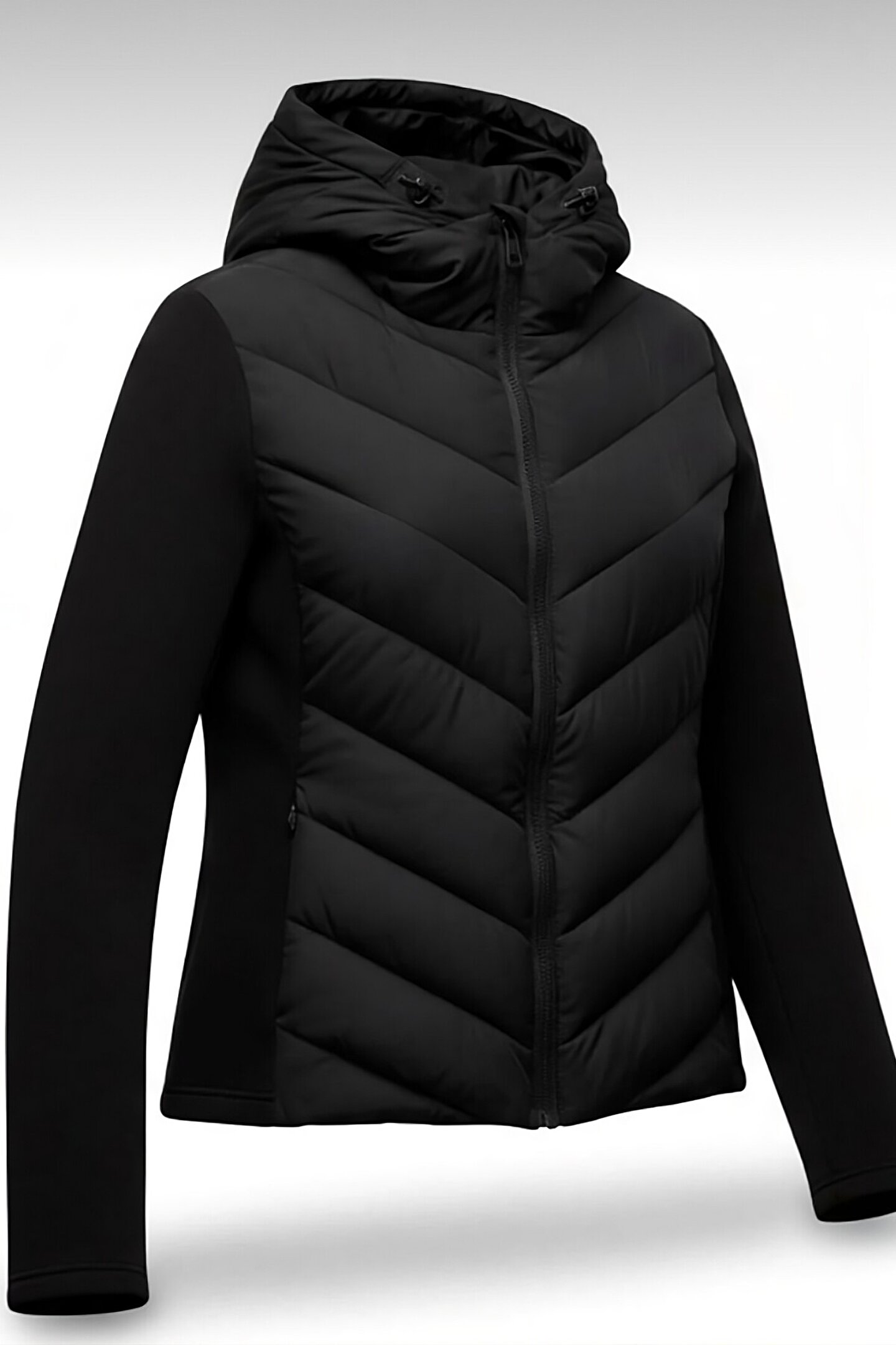 moda armanc Kadın Siyah Kapüşonlu Termal Şişme Mont - ZR Range Rover Mom Kontrast Ceket