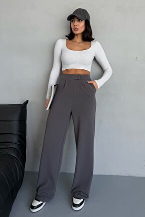 moda armanc Kadın Yüksek Bel Cırt Kapamalı Likralı Antasit Palazzo Pantolon - Günlük Rahat Kalıp