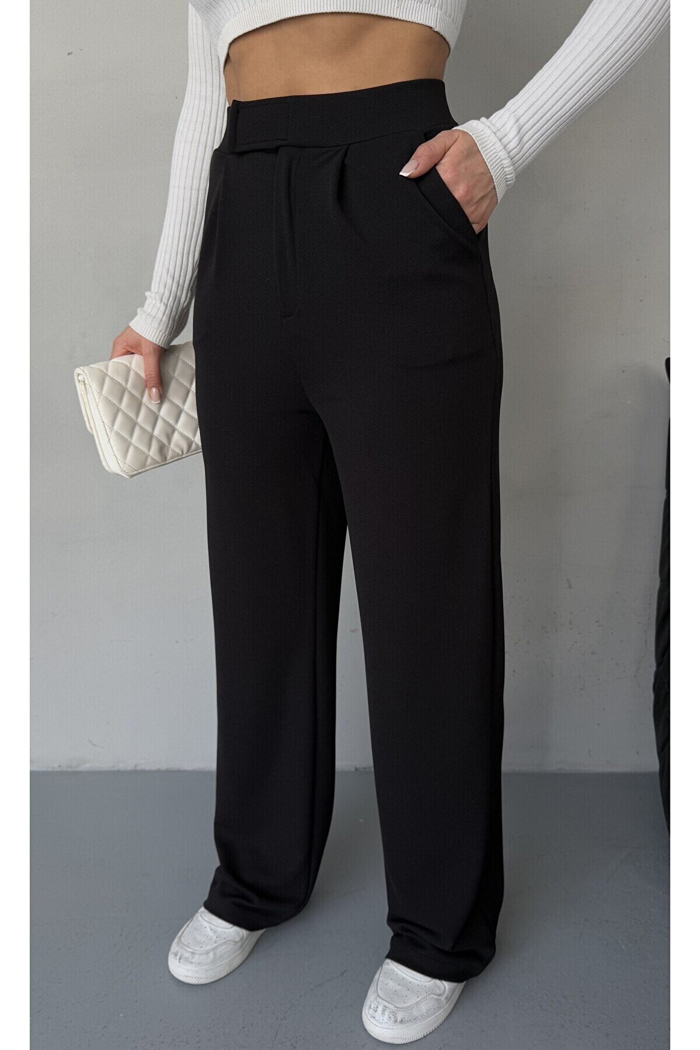 moda armanc Likralı Cırtlı Kadın Palazzo Pantolon – Cesur Tarz, Yüksek Bel, Rahat Kesim