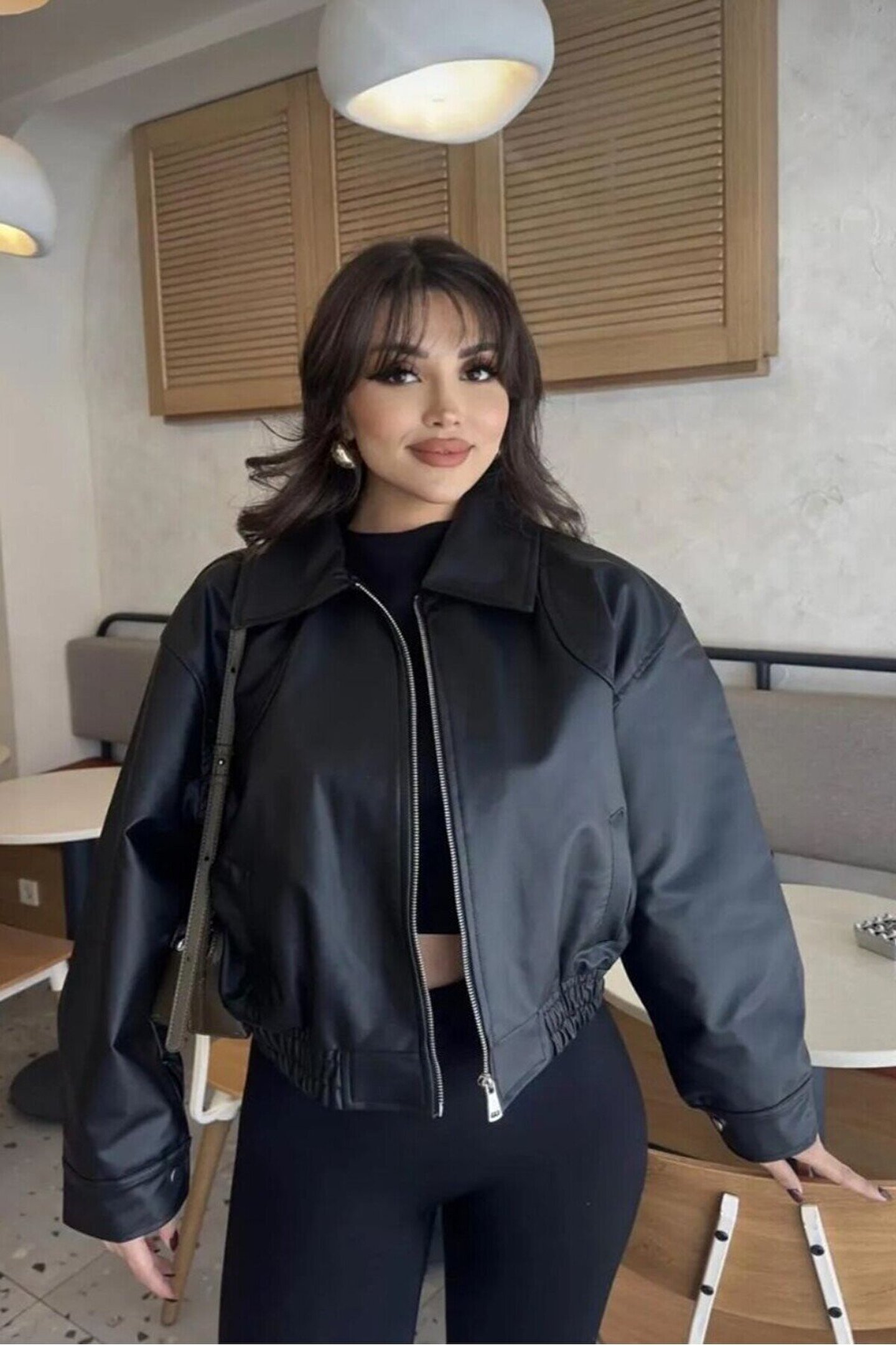- Zarif deri detaylarıyla öne çıkan bu bomber ceket, şıklığınızı tamamlar.; - Orta kalınlığındaki yapısıyla mevsim geçişlerinde ideal bir tercih olur.; - Biker siluetiyle modern ve dinamik bir görünüm kazandırırken, kemersiz tasarımı rahatlık sunar.; - Astarlı yapısı sayesinde ekstra konfor ve sıcaklık hissi verirken, fermuarlı kapama şekli kolay giyip çıkarmayı mümkün kılar.; - Suni derinin parlak dokusuyla dikkat çeken bu parça, genç koleksiyonunun enerjisini yansıtır