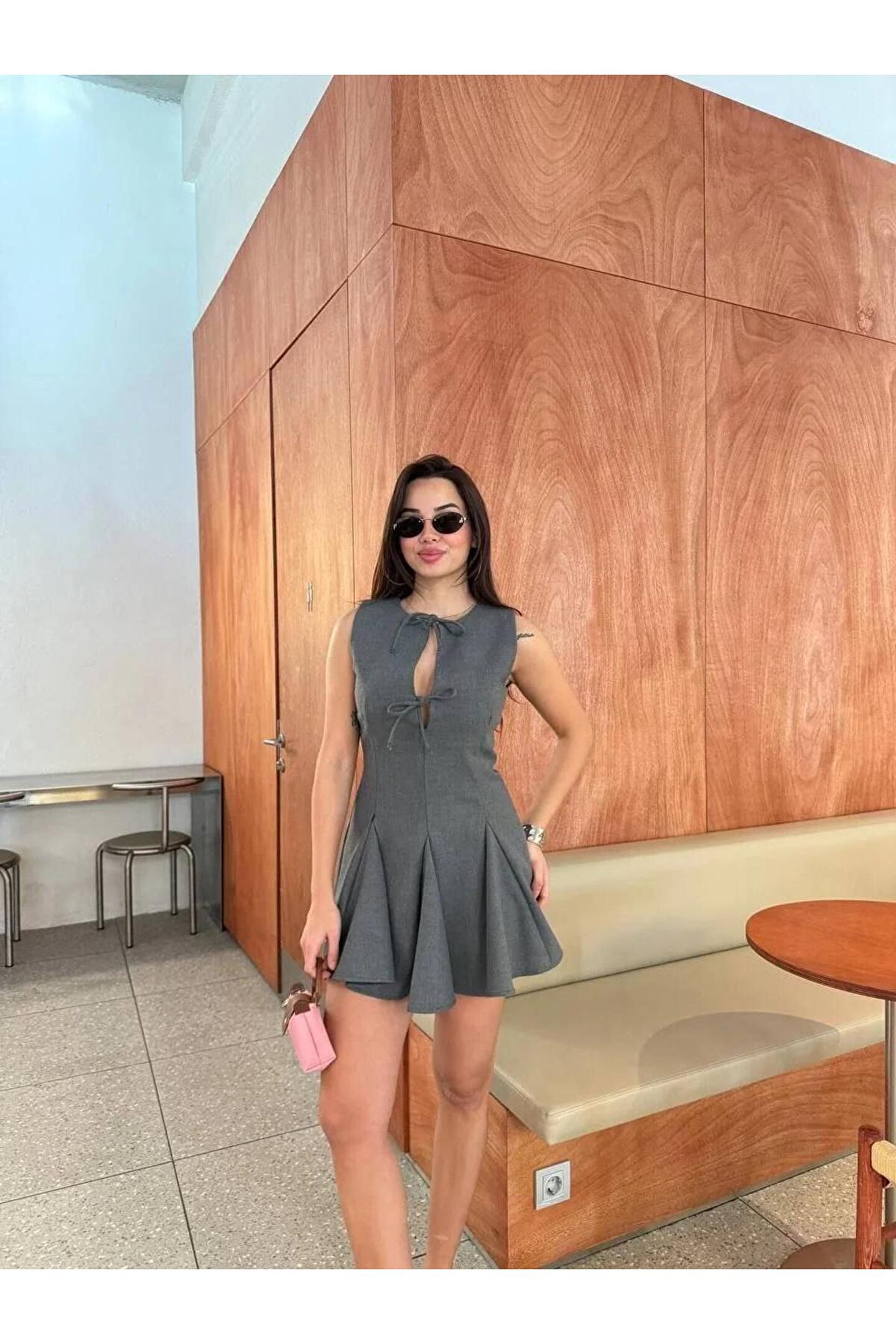 Bağcık Detaylı Kolsuz Mini Elbise - Antrasit