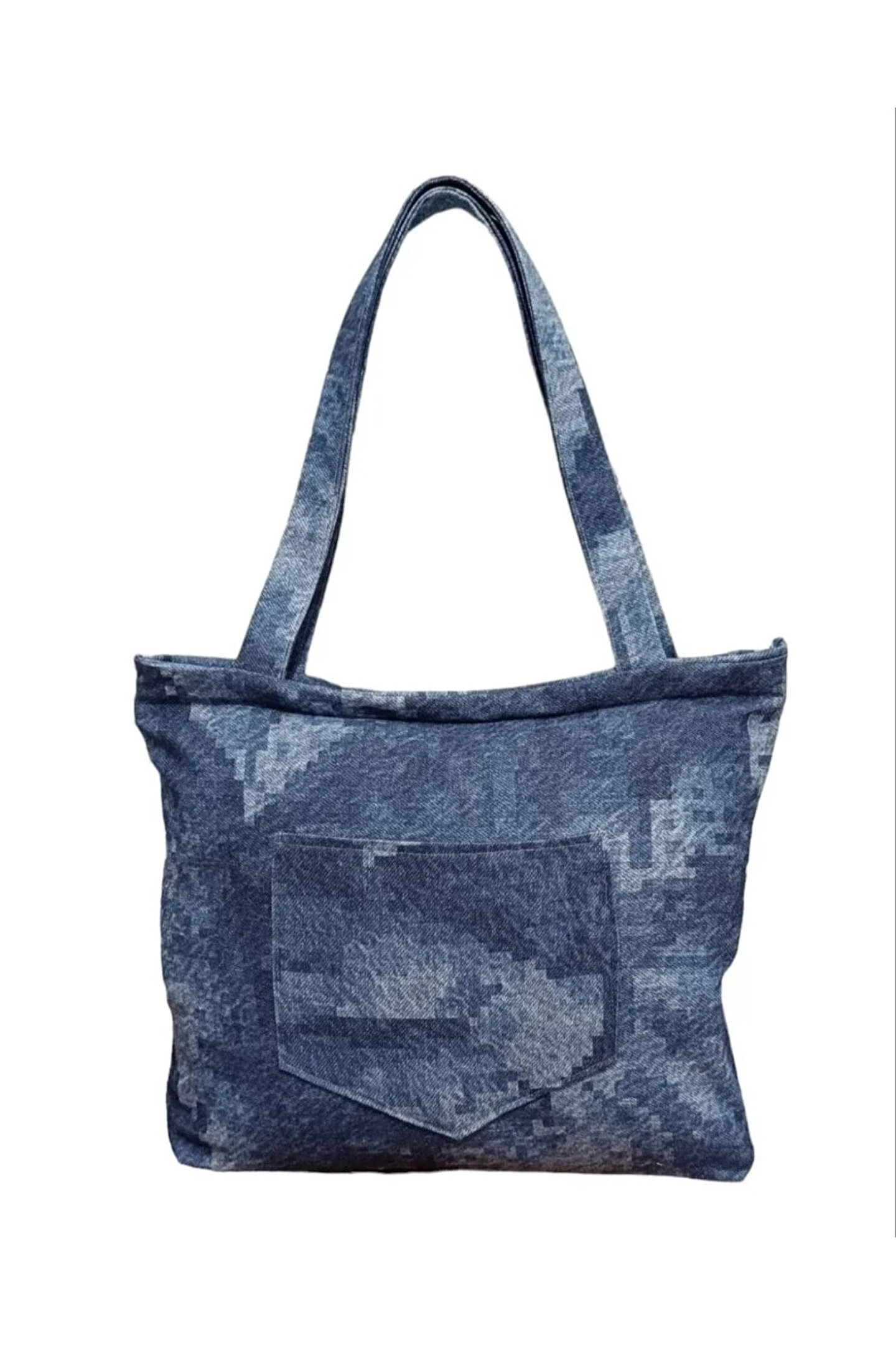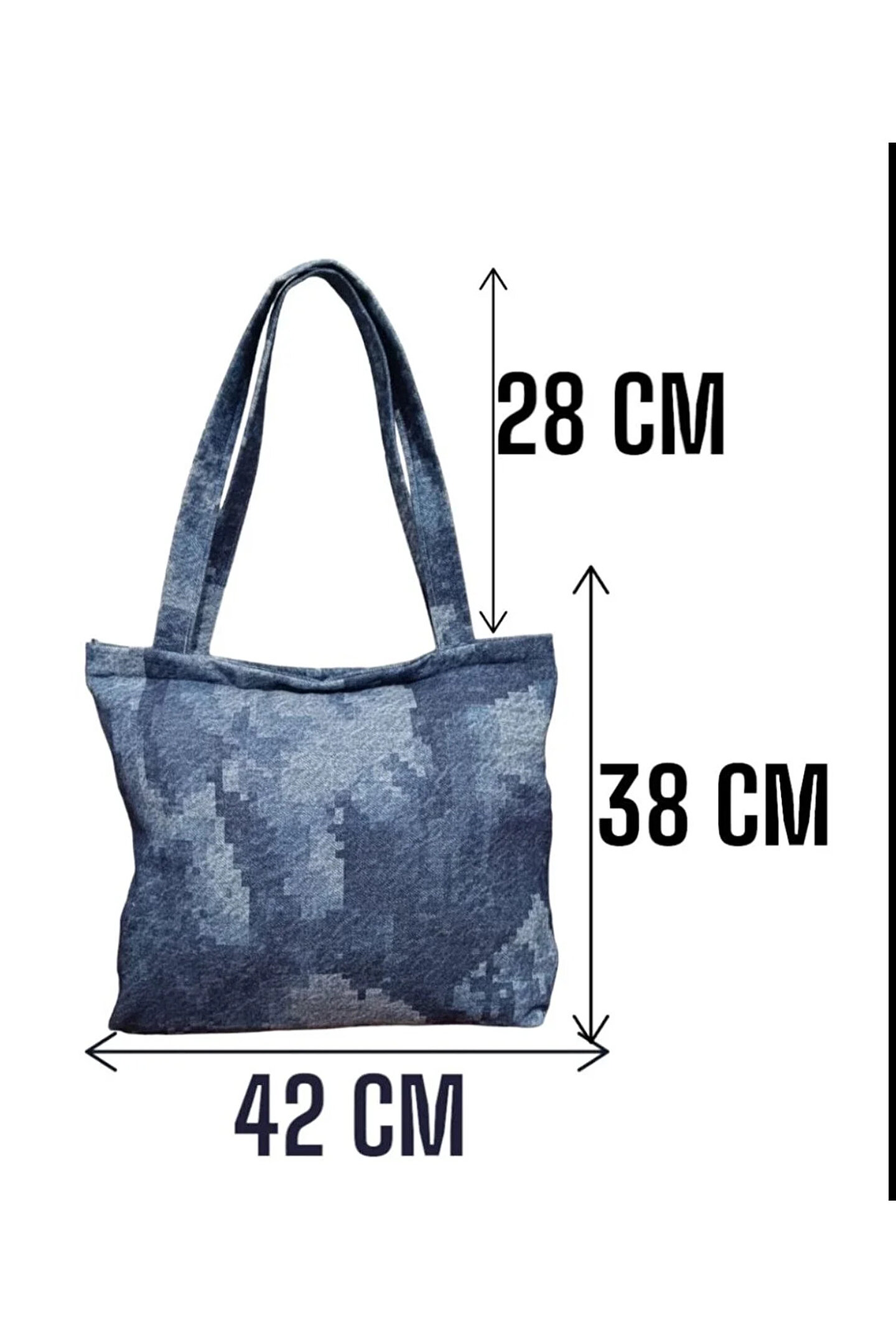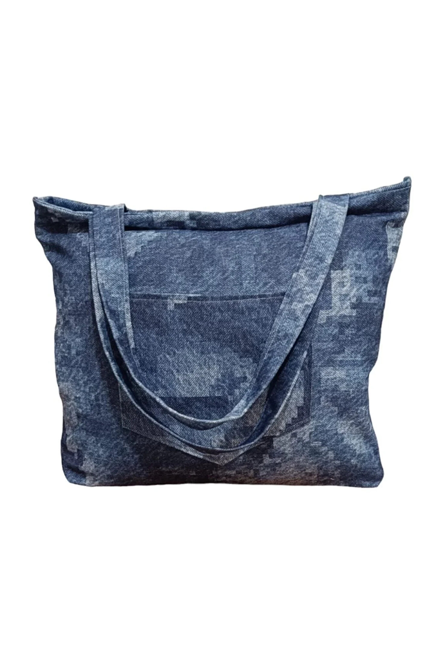 Desenli Bez Tote Bag Çanta Cepli ve Fermuarlı