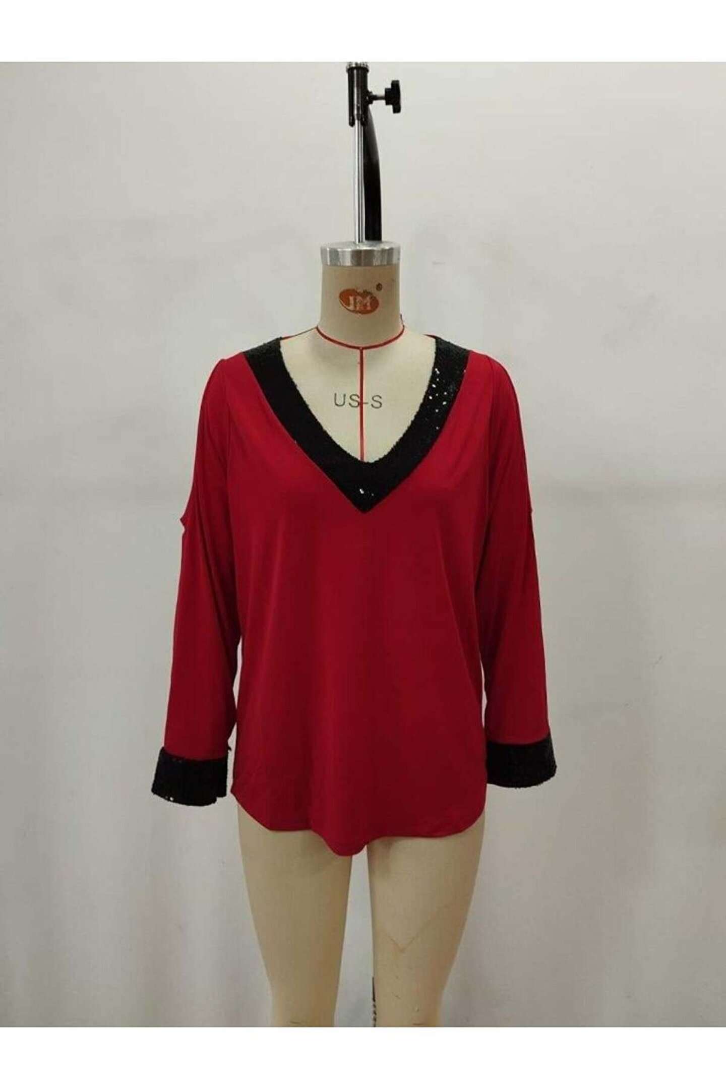 Kadın Uzun Kollu V Yakalı Omuzlardan Açık Sandy Bluz