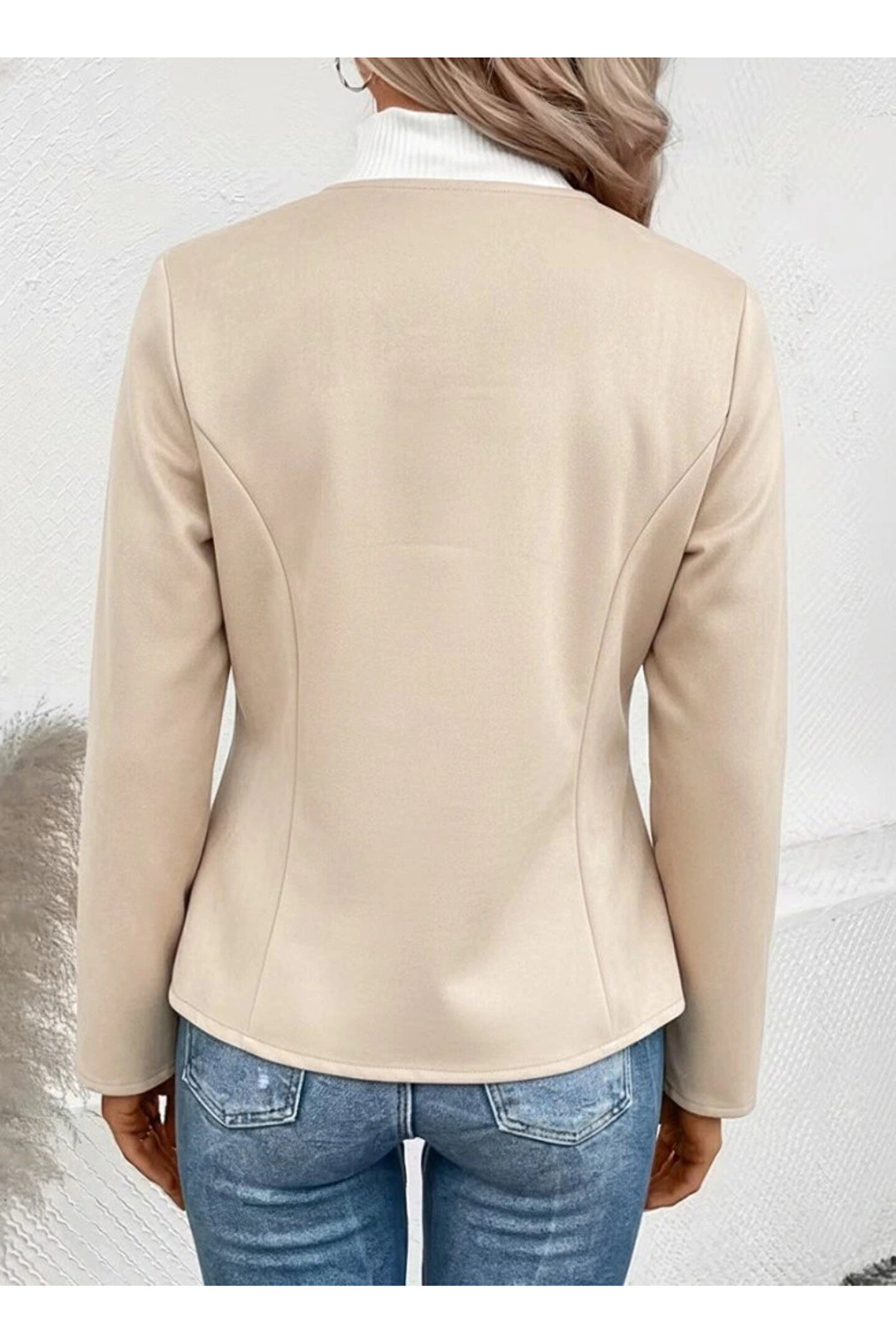Moda Ebrar Kadın Uzun Kollu Yuvarlak Yaka önden Fermuarlı Süet Ceket