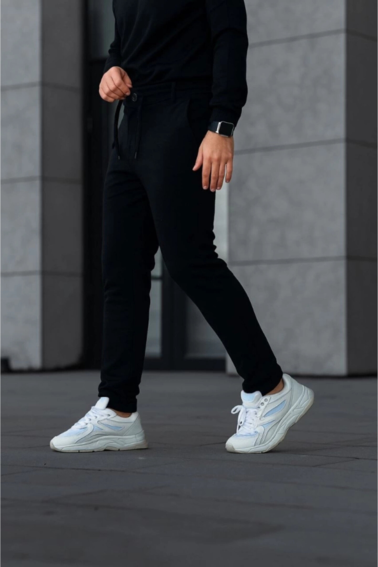MODA Erkek Diagonel Mikro Dokulu Cepli Pantolon - Siyah