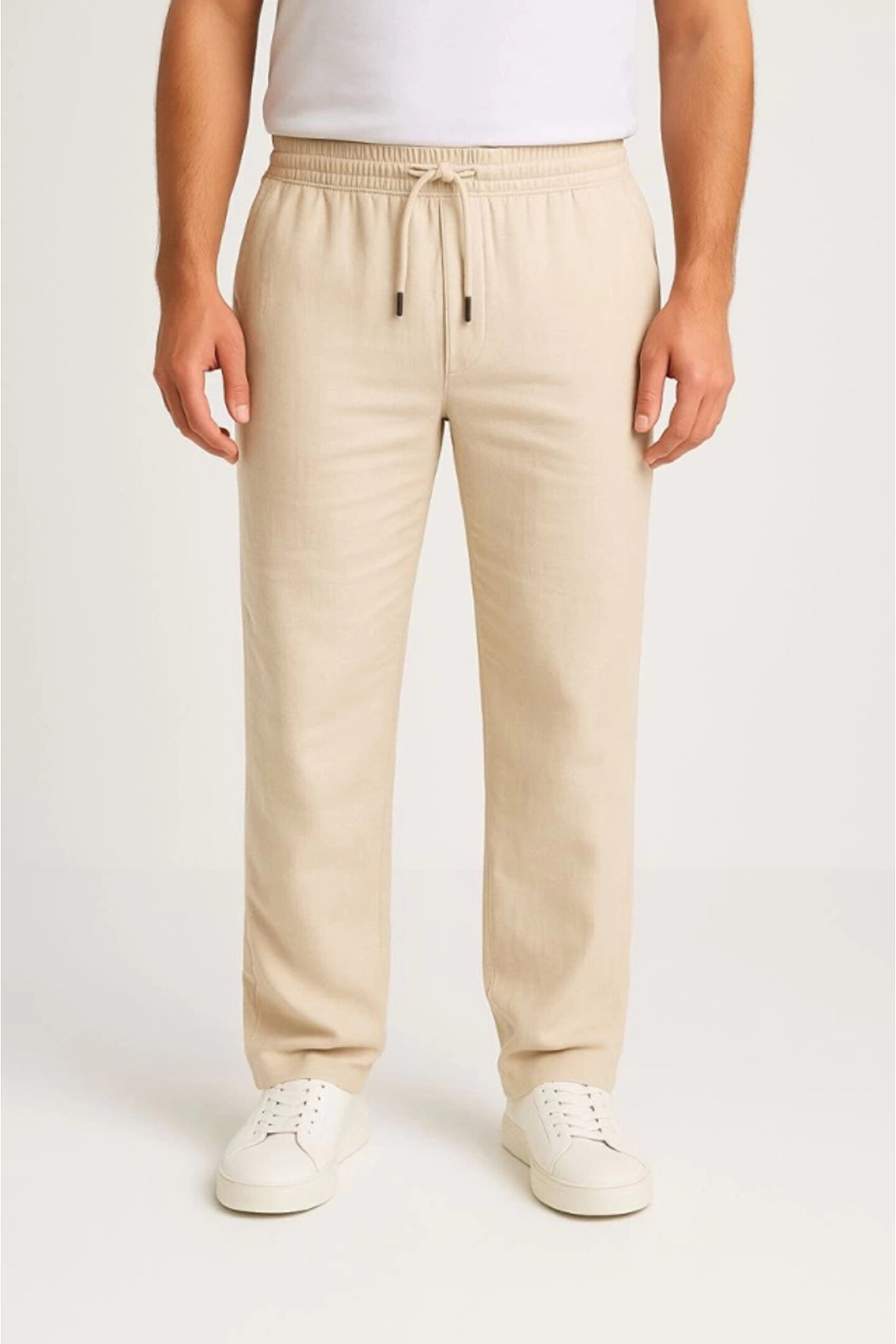 MODA Erkek Keten Pantolon – Cepli, Beli Lastikli Ve Bağcıklı, Nefes Alan Rahat Kalıp, Yazlık Ve Baharlık