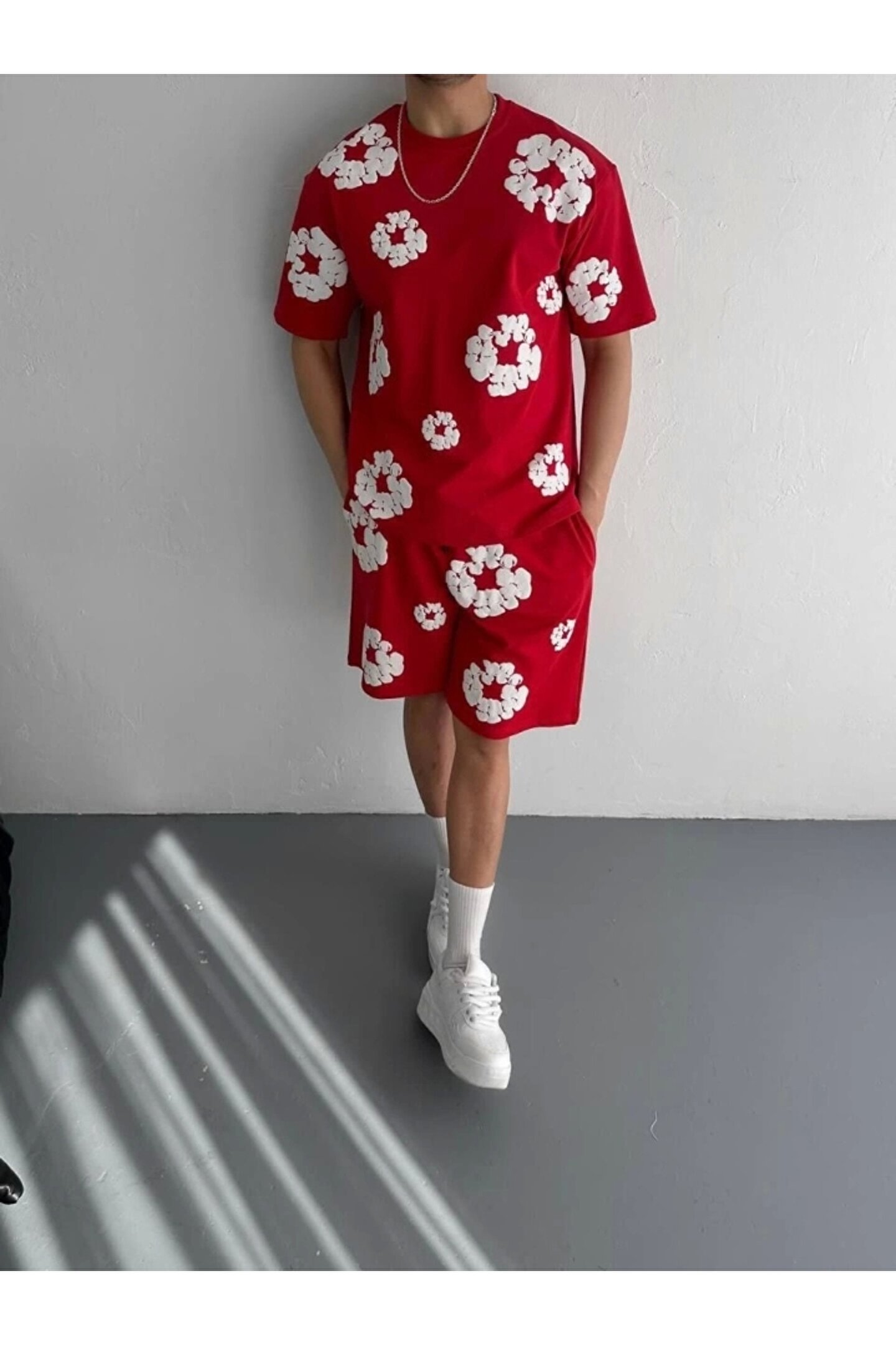 İki İplik Kumaş Baskılı T-shirt Şortlu Takım- Kırmızı Modanın Öncüsü Kadın Giyim Markası Misperry'e hoşgeldiniz! Misperry, kadınların tarzlarını ifade etmelerine ve güçlü bir duruş sergilemelerine olanak tanıyan bir markadır.; 2019 yılından bu yana sektörde varlığını sürdüren firmamız, yenilikçi tasarımları ve kaliteli ürünleriyle dikkat çekiyor.; Misperry olarak amacımız, her kadının kendine özgü tarzını yansıtabileceği, güvenilir ve şık giyim seçenekleri sunmaktır.; Koleksiyonlarımızda her zevke hitap eden parçaları bulabilirsiniz.; Günlük hayatta rahatlıkla tercih edilebilecek şık elbiselerden iş görüşmelerinde stilinizi tamamlayacak takım elbiselere, spor giyimden abiye modellere kadar geniş bir ürün yelpazemiz bulunmaktadır.; Tasarımlarımızı oluştururken moda trendlerini yakından takip ediyor, farklı tarzlara ve bedenlere uygun seçenekler sunmaya özen gösteriyoruz.; Aynı zamanda kalite ve dayanıklılık da önceliklerimiz arasındadır.; Her parça, titizlikle seçilen kumaşlar ve dikkatle işlenen detaylarla özenle üretilmektedir.; Müşteri memnuniyeti bizim için en önemli önceliktir.; Profesyonel müşteri hizmetleri ekibimiz, her adımda size yardımcı olmak ve alışveriş deneyiminizi en üst düzeye çıkarmak için buradadır.; Siz değerli müşterilerimizin geri bildirimleri, bizi daha da ileriye taşımak için önemli bir kaynaktır.; Misperry olarak, sadece giyimde değil, aynı zamanda kadınların güçlendirilmesi ve kendilerini ifade etmeleri konusunda da bir misyon taşıyoruz.; Her kadının kendi tarzını keşfetmesine ve kendine güvenle adım atmasına yardımcı olmak için buradayız.; Misperry'de her detayı düşünülmüş, şıklığı ve rahatlığı bir arada sunan parçalarla dolu koleksiyonlarımızı keşfetmek için sizi mağazamıza bekliyoruz.; Siz de ailemize katılın ve tarzınızı keşfedin!
