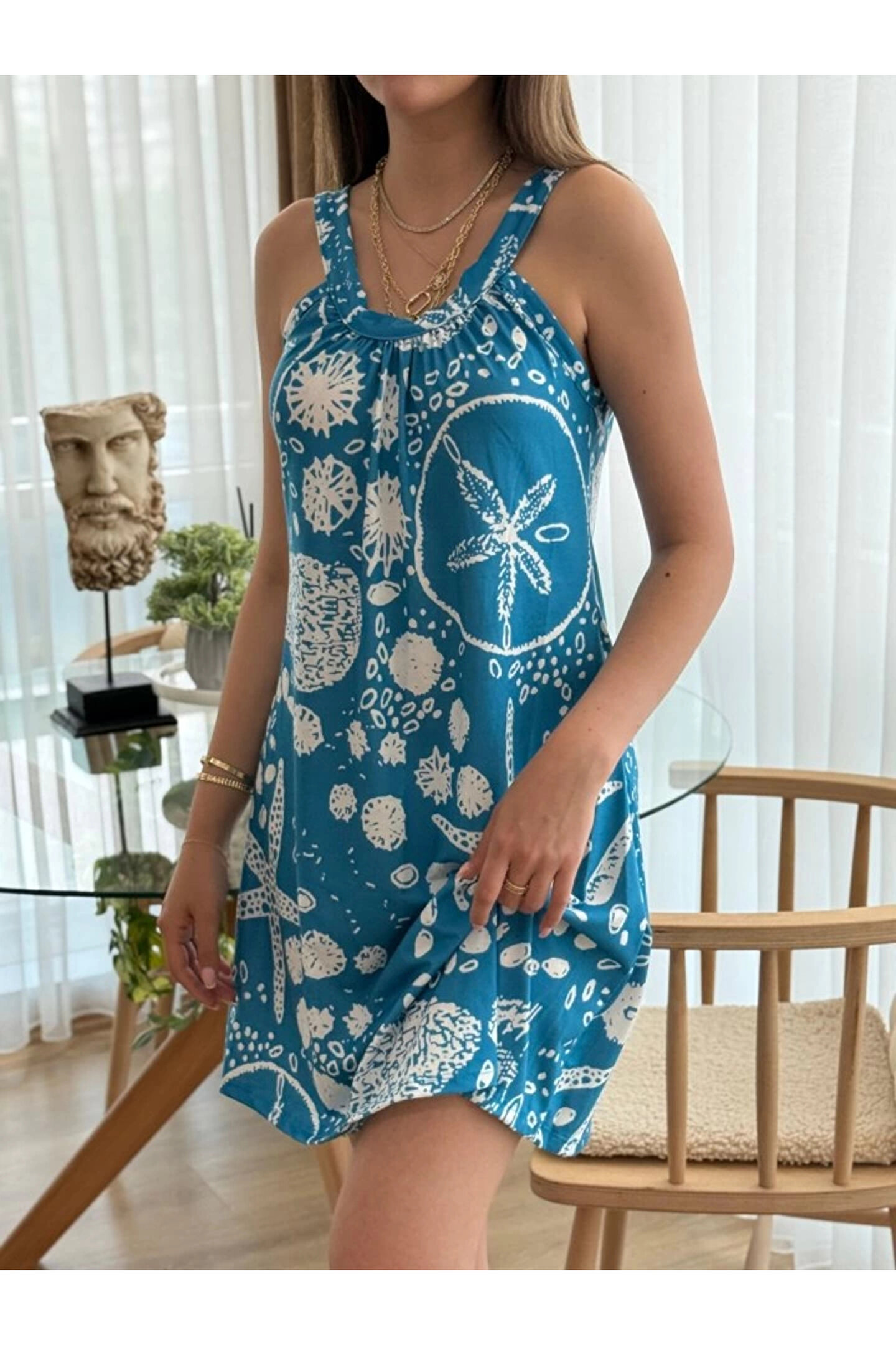 Kadın Askılı Deniz Yıldızı Desenli Süprem Elbise