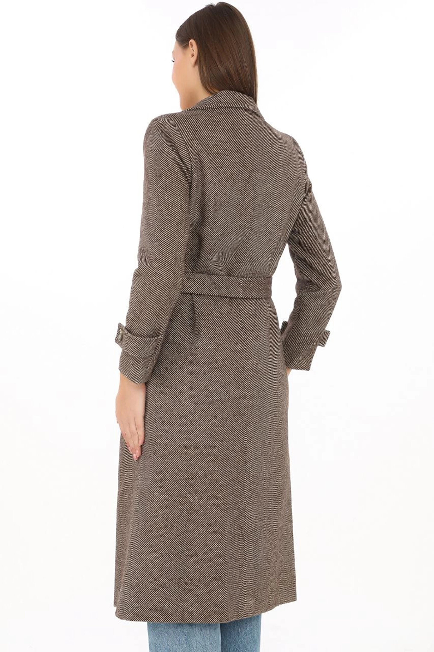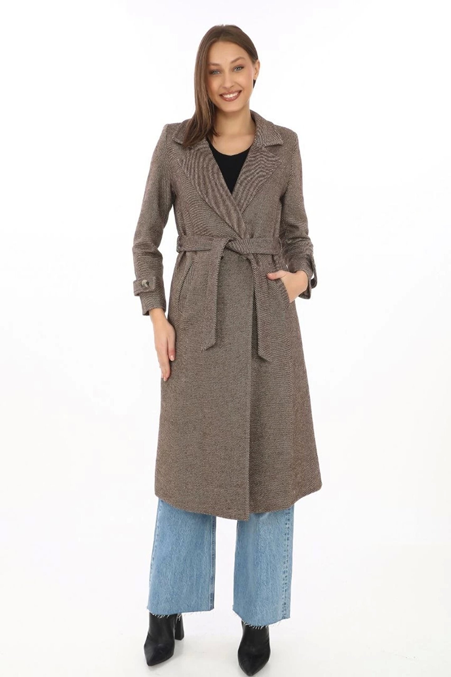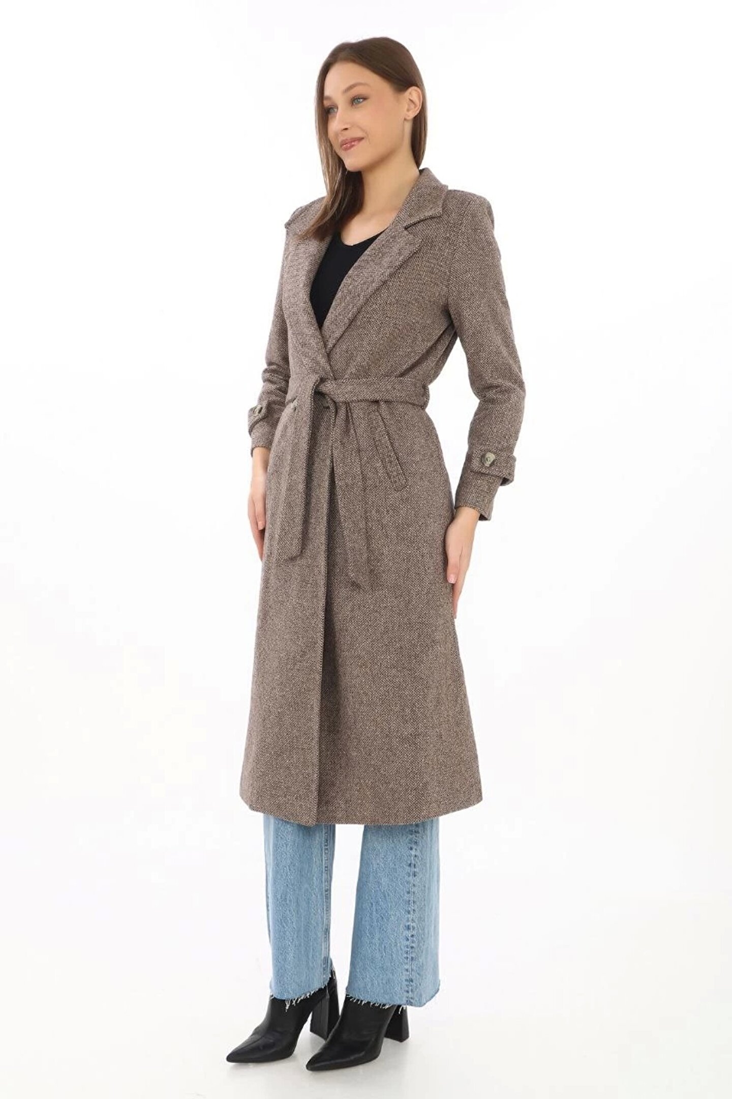 MODA Kadın Balık Sırtı Kaşe Kaban – Uzun Boy Kruvaze Yaka Kuşaklı Astarlı Kışlık Tesettür Kaban, Yünlü Do