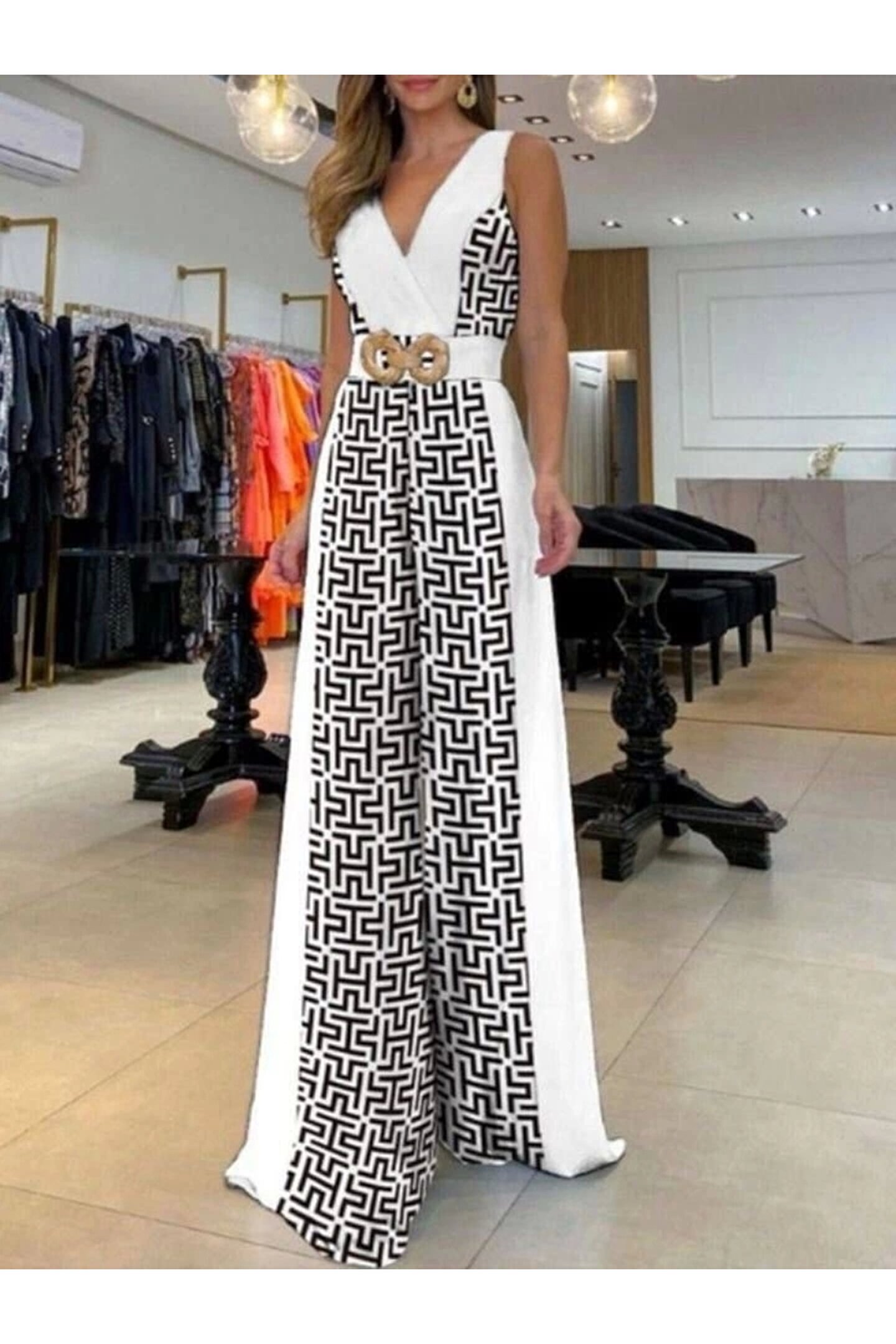 MODA Kadın Göğüs Dekolteli Toka Detay Dijital Baskılı Tulum