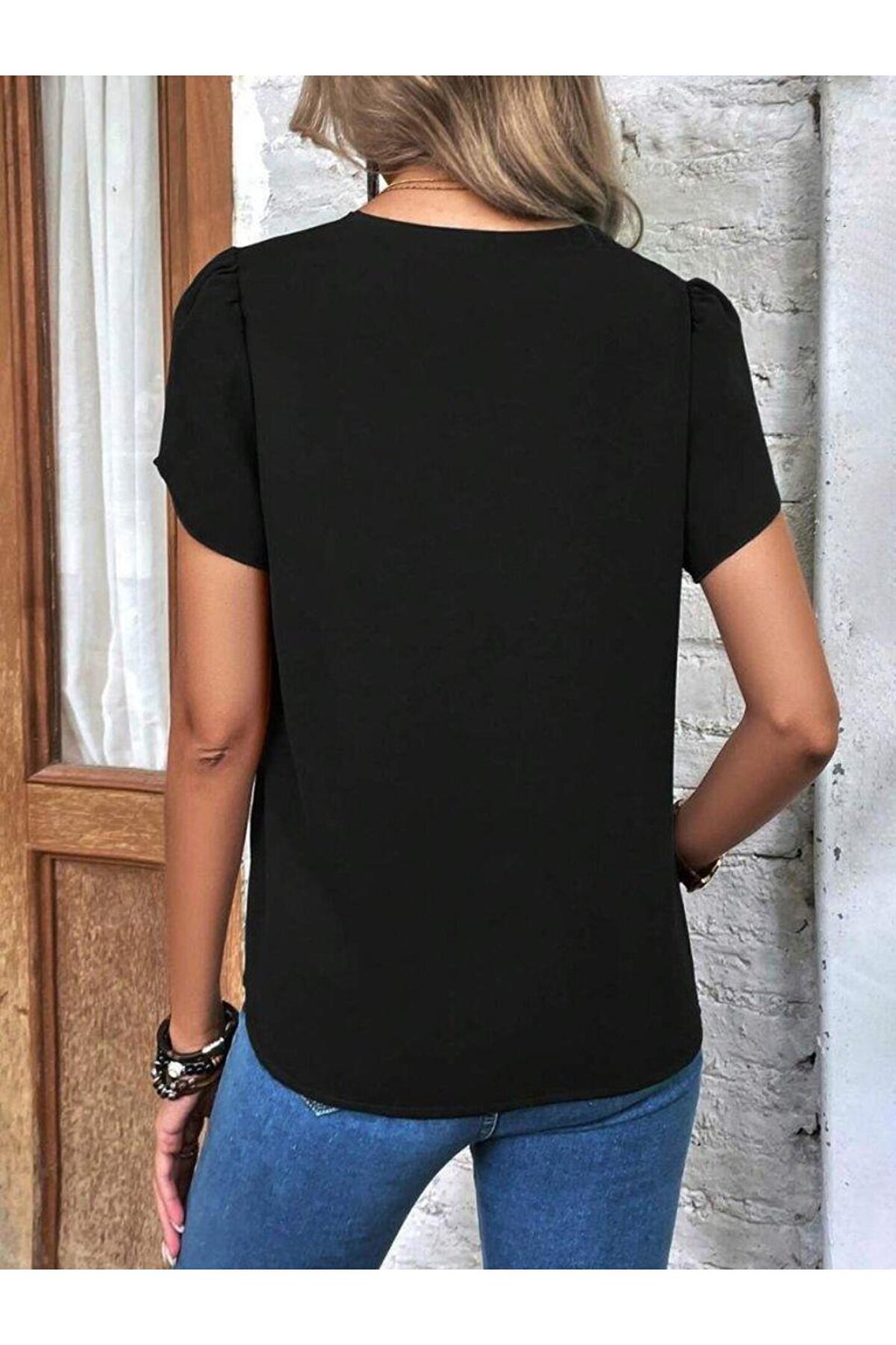 Kadın Kısa Kollu Lazer V Yakalı Ithal Krep Bluz