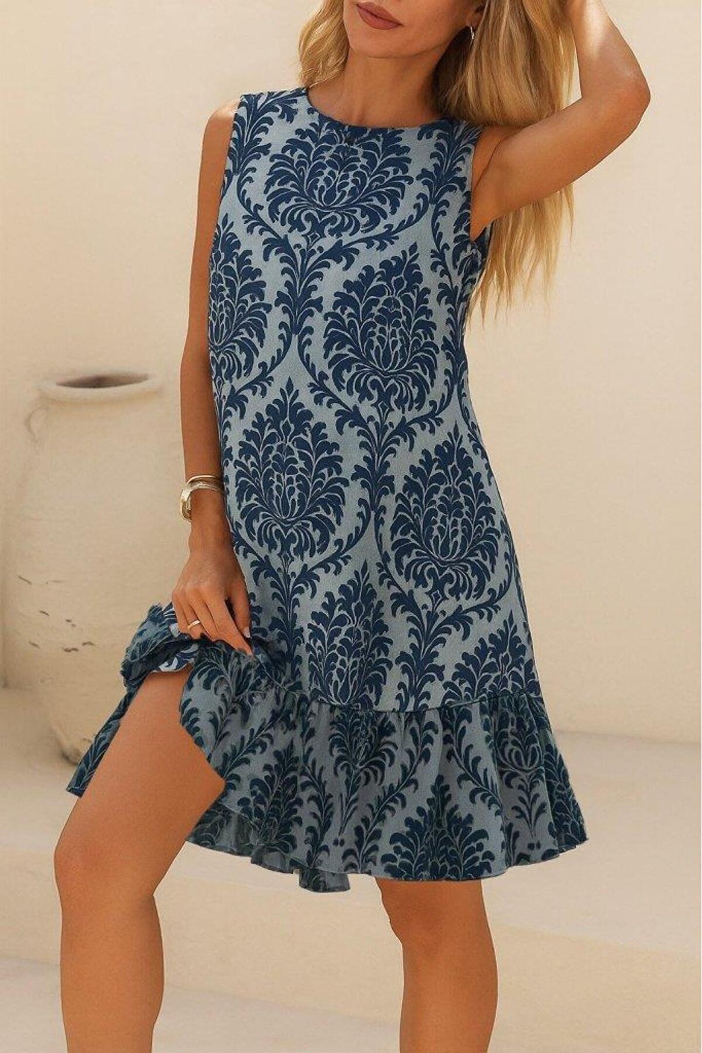 MODA Kadın Kolsuz Sırttan Bağlamalı Fırfırlı Leopar Desenli Süprem Elbise