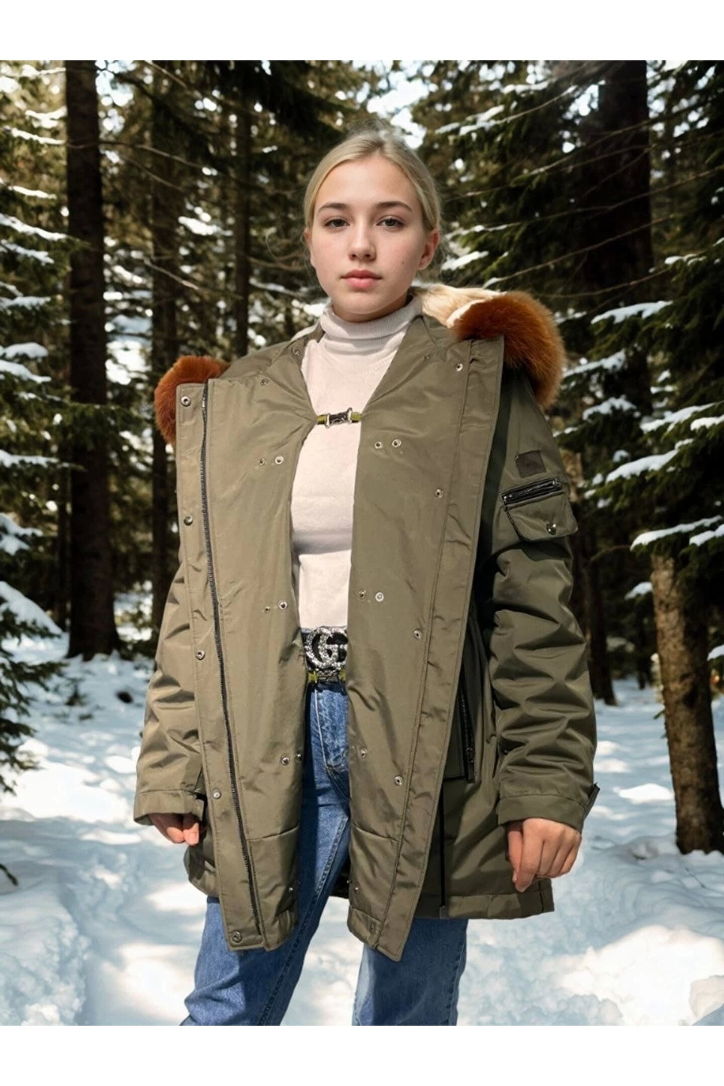 MODA Kadın Su Geçirmez Kapüşonlu Mont - Haki