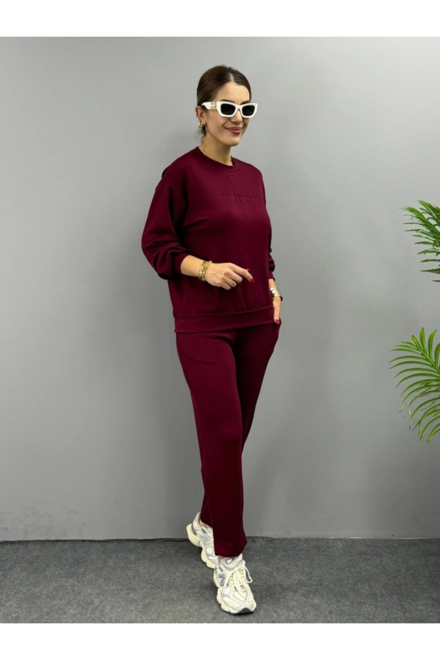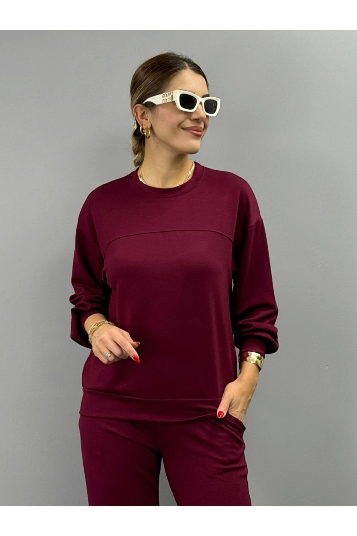 MODA Kadın Uzun Kollu Bisiklet Yaka Viskon Iki Iplik Bluz Ve Pantolon Ikili Takım