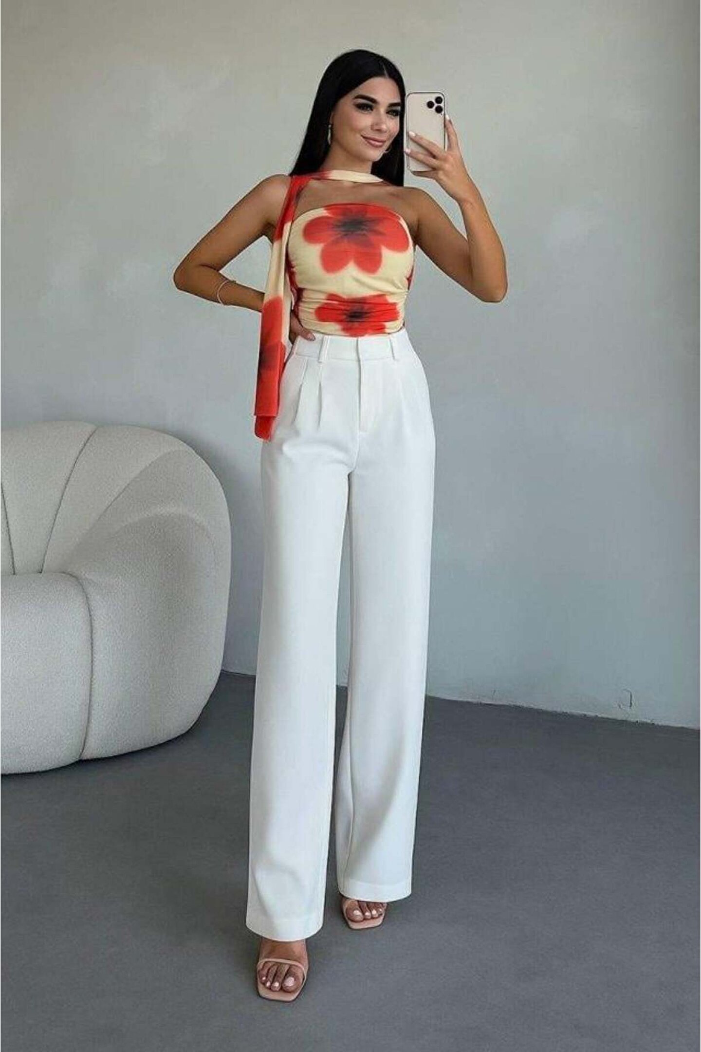 MODA Kadın Yüksek Bel Plise Detay Bol Paça Pantolon