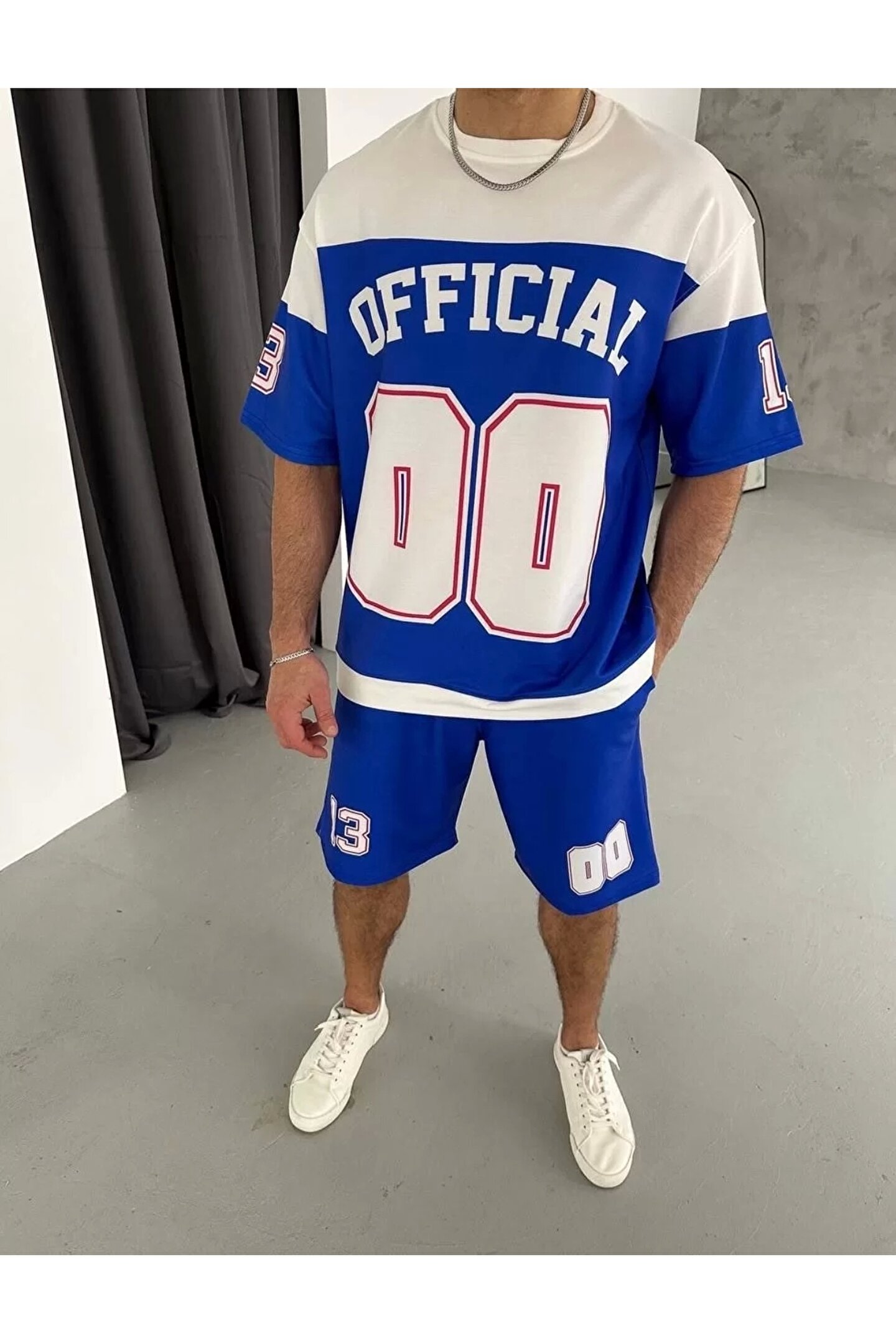 Dijital 00 Baskılı Şortlu Takım - Mavi