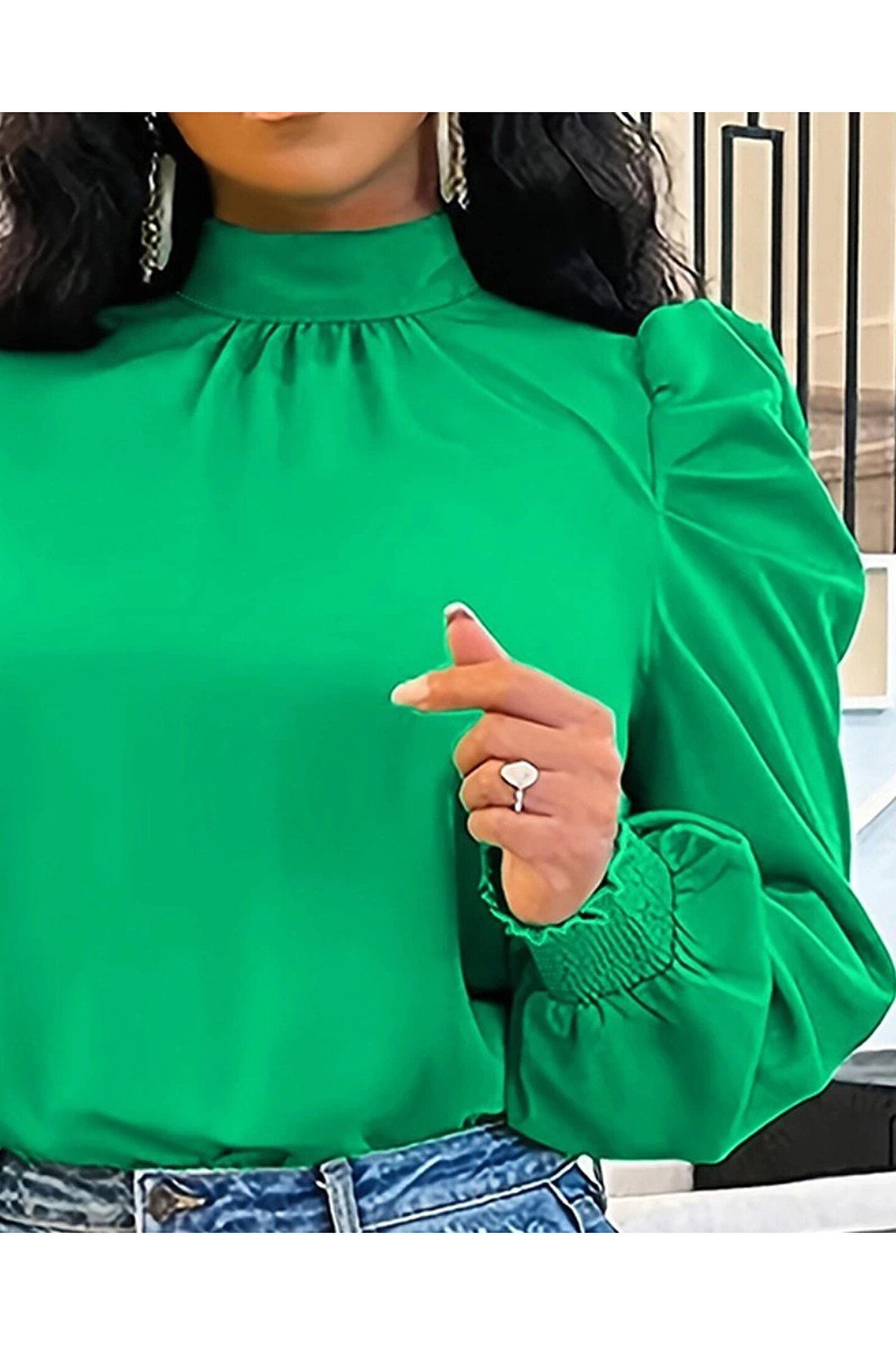 Kadın Uzun Kollu Balıkçı Yaka Arkadan Bağlamalı Omuzlardan Balon Ithal Krep Bluz
