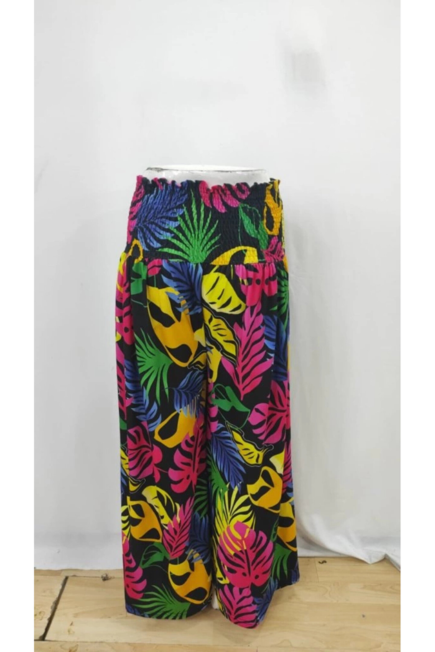 Kadın Yüksek Bel Lastikli Desenli Süprem Pantolon