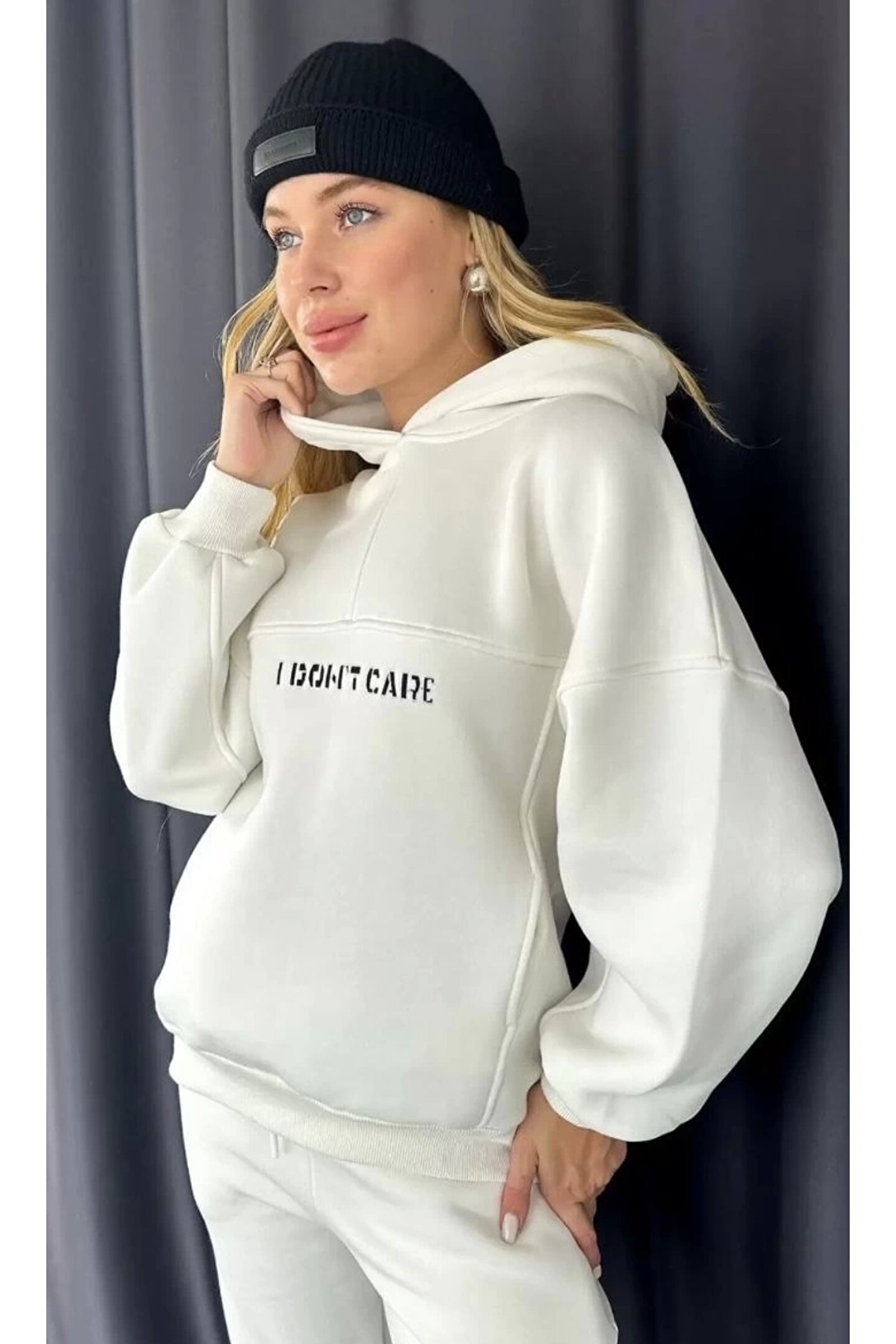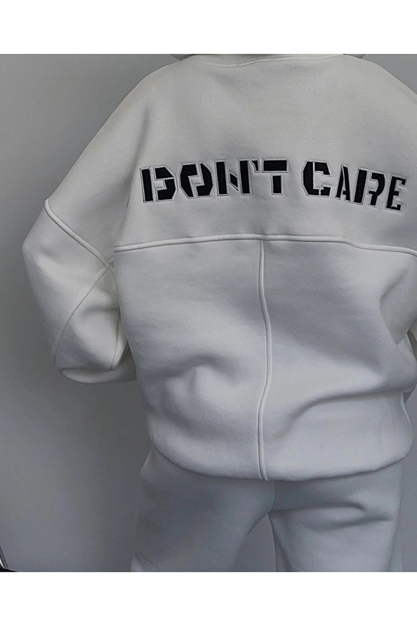 Nakış İşlemeli Üç İplik Sweat Takım- Beyaz
