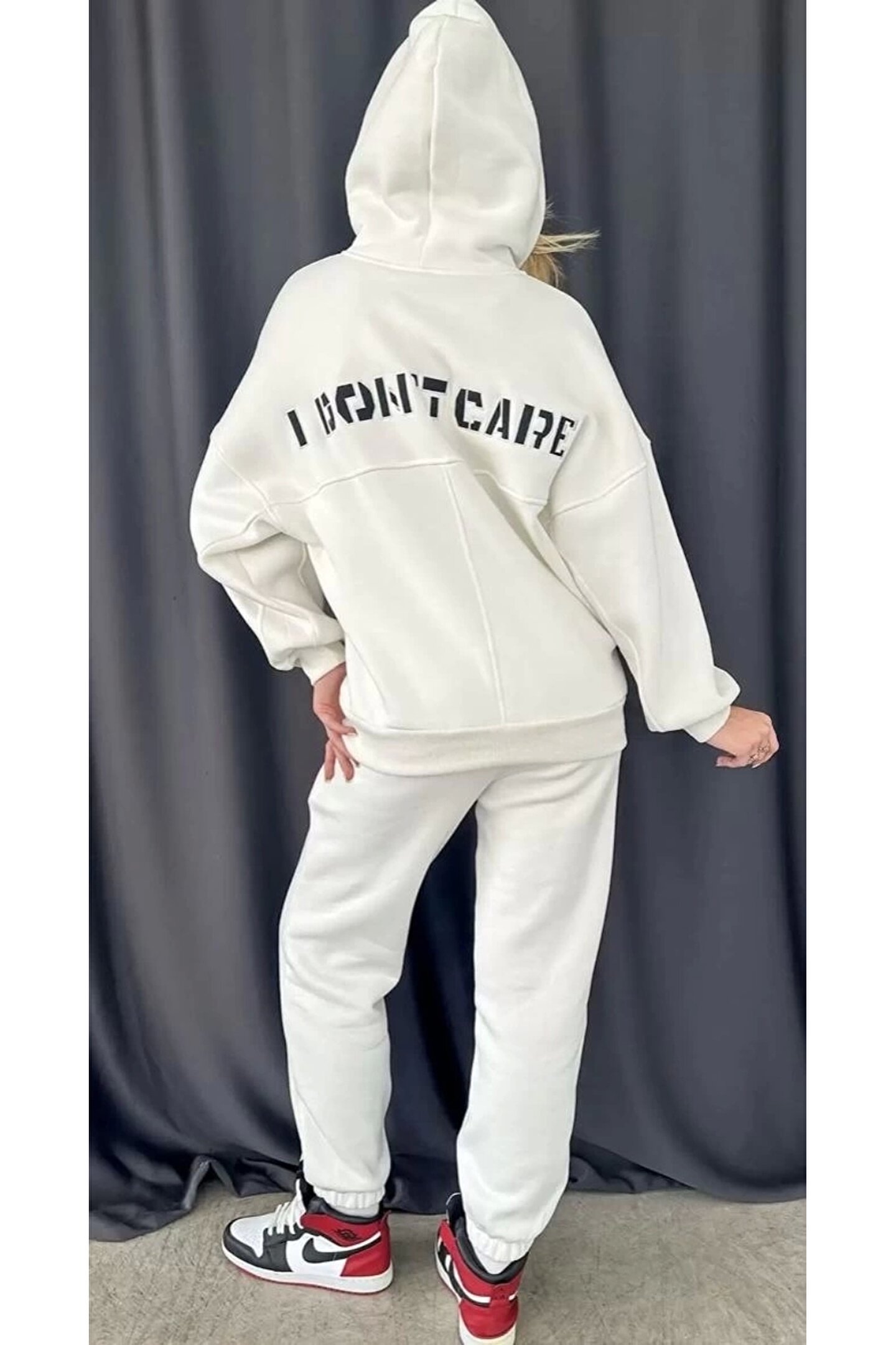 MODA Nakış İşlemeli Üç İplik Sweat Takım- Beyaz