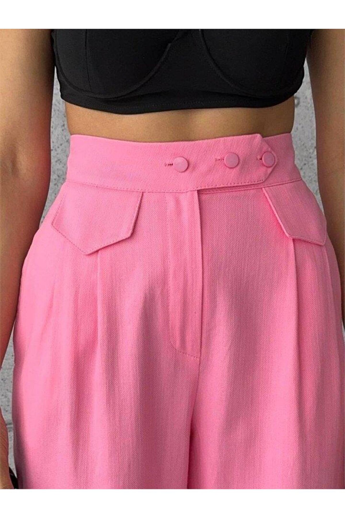 MODA PANTOLON KAPALI CEP 3 DÜĞME DETAYLI - Pembe