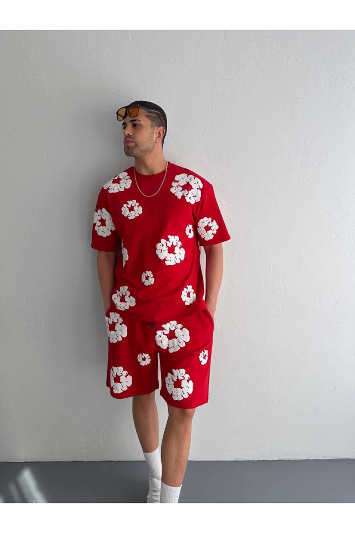 İki İplik Kumaş Baskılı T-shirt Şortlu Takım- Kırmızı Modanın Öncüsü Kadın Giyim Markası Misperry'e hoşgeldiniz! Misperry, kadınların tarzlarını ifade etmelerine ve güçlü bir duruş sergilemelerine olanak tanıyan bir markadır.; 2019 yılından bu yana sektörde varlığını sürdüren firmamız, yenilikçi tasarımları ve kaliteli ürünleriyle dikkat çekiyor.; Misperry olarak amacımız, her kadının kendine özgü tarzını yansıtabileceği, güvenilir ve şık giyim seçenekleri sunmaktır.; Koleksiyonlarımızda her zevke hitap eden parçaları bulabilirsiniz.; Günlük hayatta rahatlıkla tercih edilebilecek şık elbiselerden iş görüşmelerinde stilinizi tamamlayacak takım elbiselere, spor giyimden abiye modellere kadar geniş bir ürün yelpazemiz bulunmaktadır.; Tasarımlarımızı oluştururken moda trendlerini yakından takip ediyor, farklı tarzlara ve bedenlere uygun seçenekler sunmaya özen gösteriyoruz.; Aynı zamanda kalite ve dayanıklılık da önceliklerimiz arasındadır.; Her parça, titizlikle seçilen kumaşlar ve dikkatle işlenen detaylarla özenle üretilmektedir.; Müşteri memnuniyeti bizim için en önemli önceliktir.; Profesyonel müşteri hizmetleri ekibimiz, her adımda size yardımcı olmak ve alışveriş deneyiminizi en üst düzeye çıkarmak için buradadır.; Siz değerli müşterilerimizin geri bildirimleri, bizi daha da ileriye taşımak için önemli bir kaynaktır.; Misperry olarak, sadece giyimde değil, aynı zamanda kadınların güçlendirilmesi ve kendilerini ifade etmeleri konusunda da bir misyon taşıyoruz.; Her kadının kendi tarzını keşfetmesine ve kendine güvenle adım atmasına yardımcı olmak için buradayız.; Misperry'de her detayı düşünülmüş, şıklığı ve rahatlığı bir arada sunan parçalarla dolu koleksiyonlarımızı keşfetmek için sizi mağazamıza bekliyoruz.; Siz de ailemize katılın ve tarzınızı keşfedin!