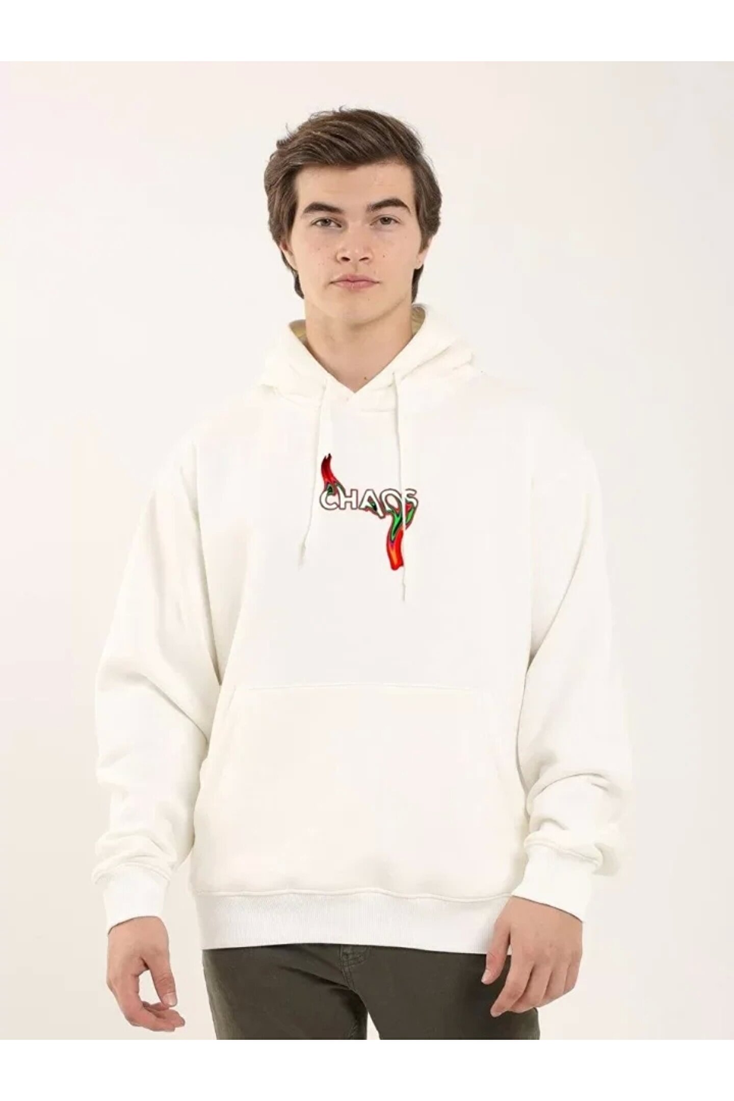 MODA Unisex Baskılı Oversize Üç İplik Kapüşonlu Sweatshirt - Beyaz