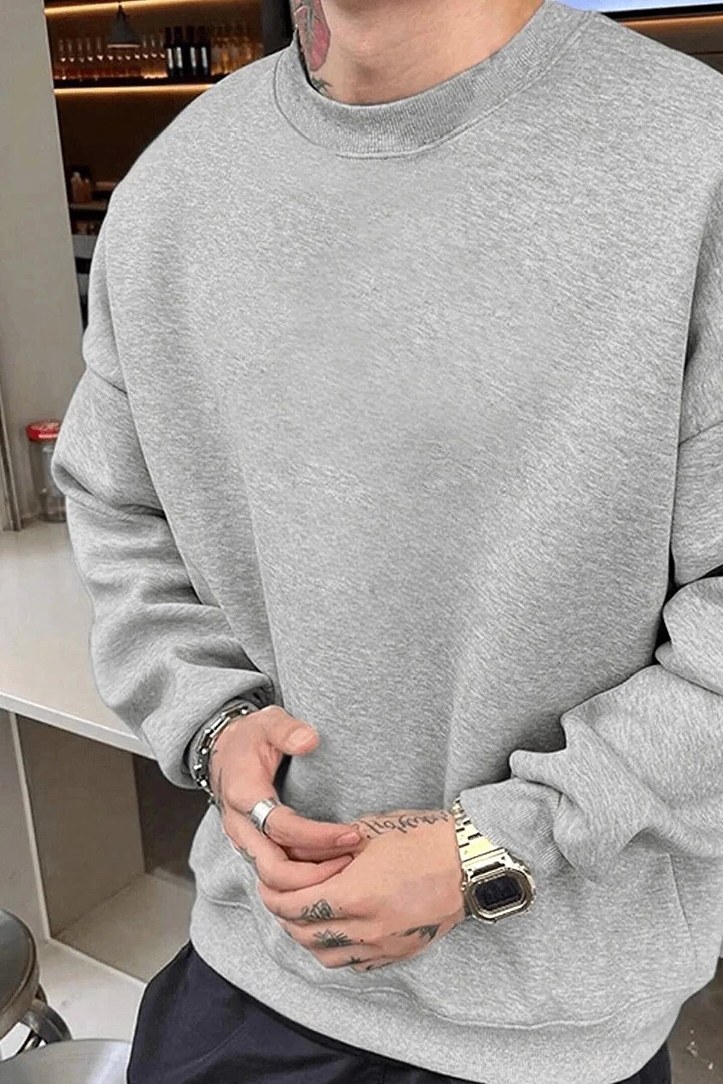 Erkek Düz Bisiklet Yaka Sweat - Gri