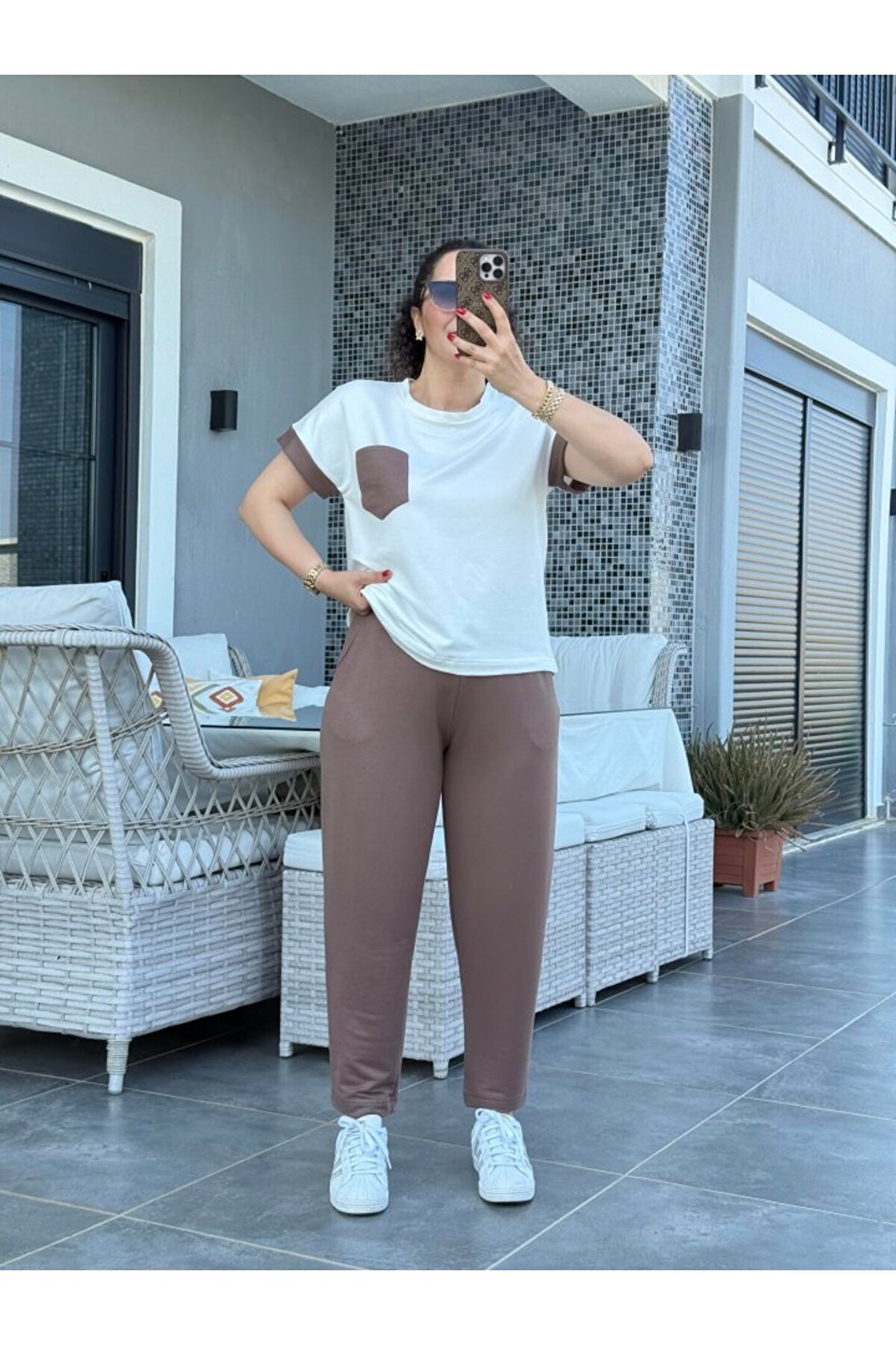 Modayakamoz Kadın Kristal Kumaş Garnili Cep Detaylı Ikili Takım