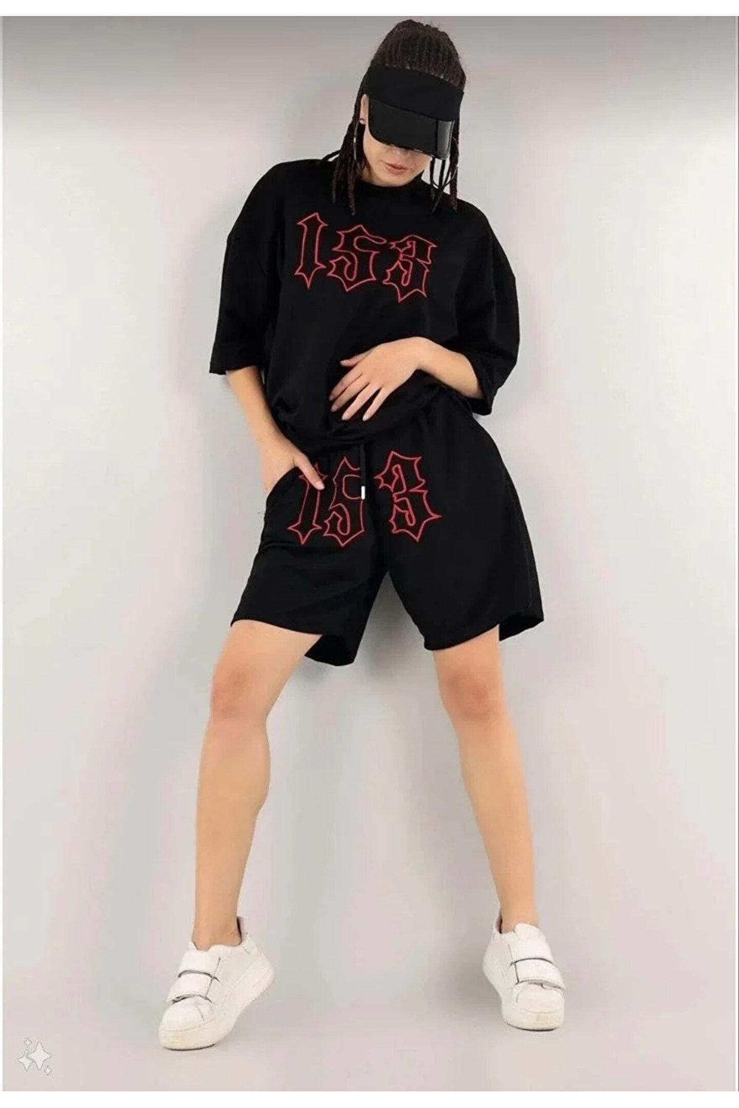 - Rahat ve şık bir görünüm için ideal, unisex nakış işlemeli siyah şort takım.; - Normal bel tasarımı ile gün boyu konfor sunar.; - Kısa kol ve bisiklet yaka detaylarıyla yaz aylarında serinlik sağlar.; - Paçasız ve bermuda paça tasarımı, hareket özgürlüğü sunar.; - Çift cepli yapısı sayesinde pratik kullanım imkanı tanır.; - 2 iplik dokuma tipi ile dayanıklılık ve kaliteyi bir arada sunar.; - A-Form fit kalıbı ile vücut hatlarını nazikçe sarar.; - Yarım pat fermuar kapama şekli, kolay giyip çıkarma olanağı sağlar.; - 70% polyester, 20% pamuk ve 10% elastan karışımından oluşan materyal bileşeni ile konforlu bir deneyim sunar.; - İlkbahar ve sonbahar mevsimleri için ideal, casual tarzda günlük kullanım için uygundur.; - Ramadan koleksiyonuna ait bu şık takım, doğal düğme detaylarıyla estetik bir dokunuş katmaktadır.