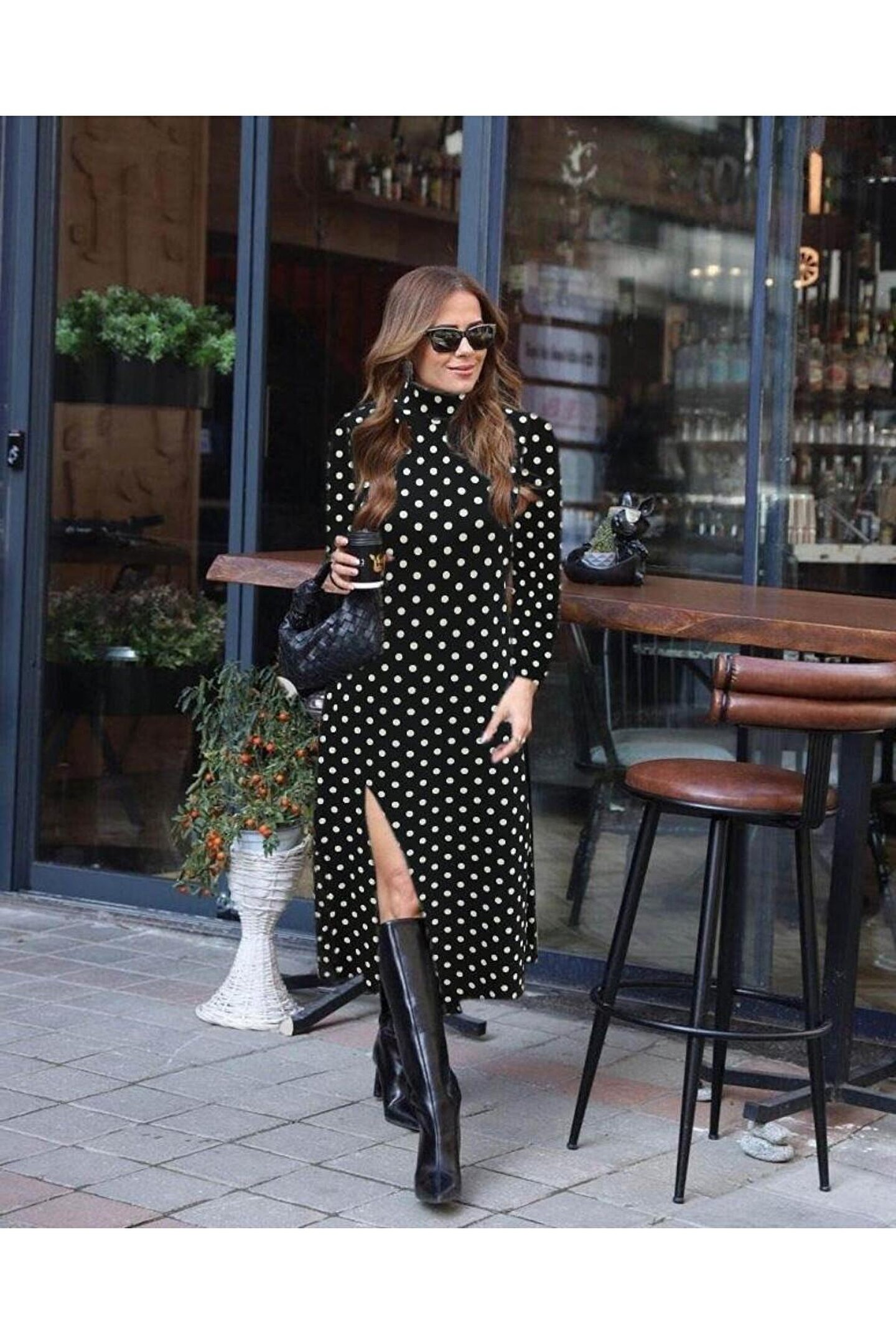 Kadın Uzun Kollu Balıkçı Yaka Yırtmaçlı Krep Elbise