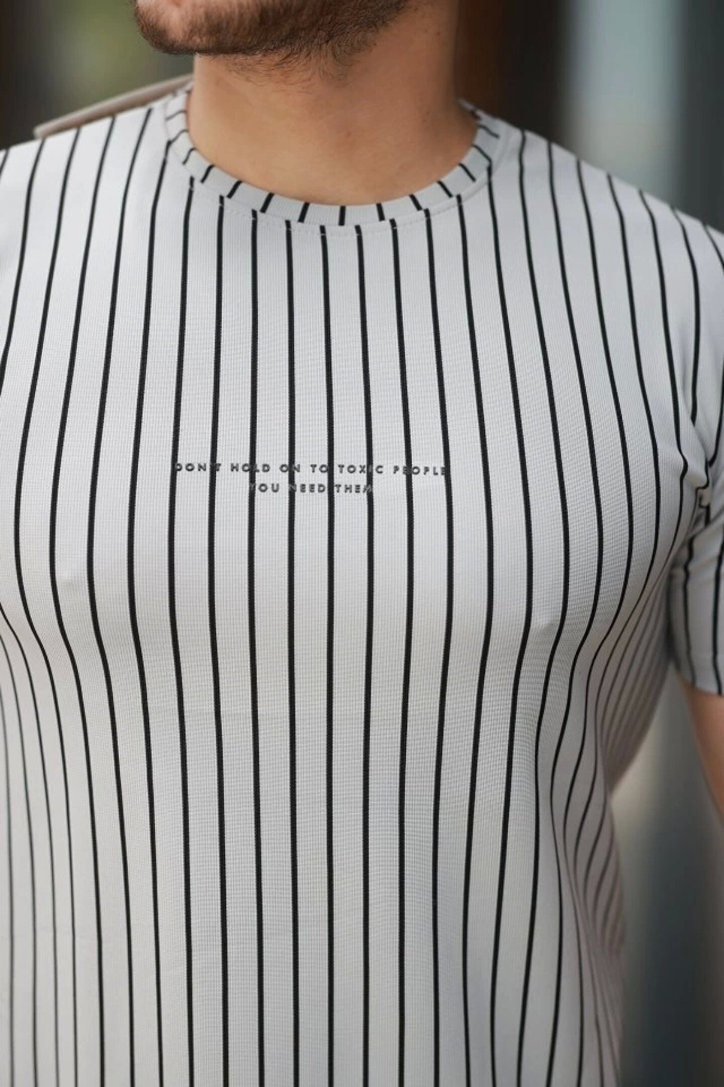 Erkek Dikey çizgili Ottoman Kumaş Kısa Kollu Tişört
