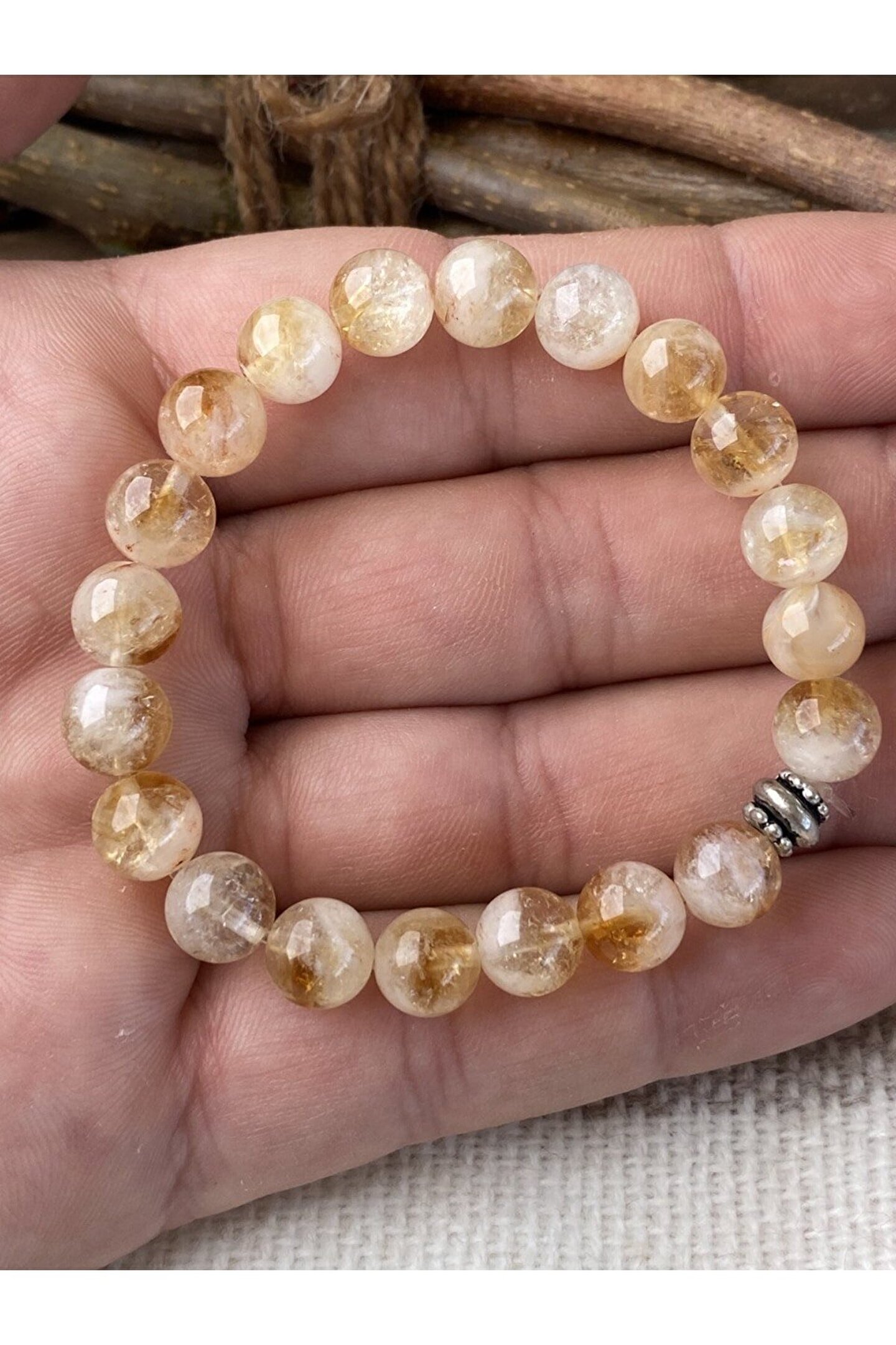Doğal taş kullanımı sayesinde her bileklik benzersiz ve otantik bir görünüm sunar; Sitrin taşı, bileklikte kullanılan ana malzeme olarak seçilmiştir, bu da hem şıklığı hem de zarafeti ön plana çıkarır; Doğal taş bileklik, günlük kullanım için idealdir ve her türlü kıyafetle kolayca uyum sağlar;