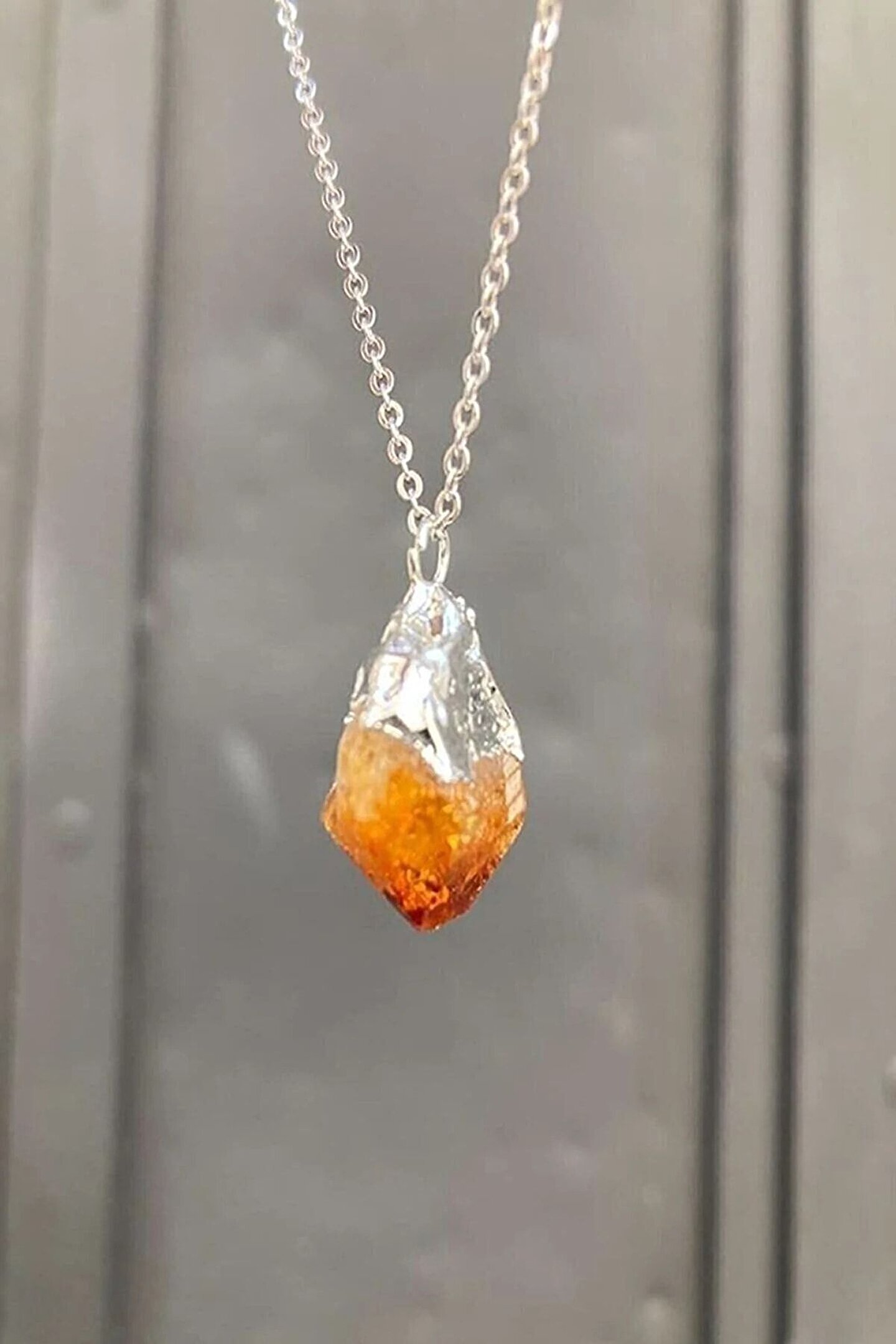 Moonstar Jewelry Sitrin Taşı Işlenmemiş Ham Doğal Taş Kolye