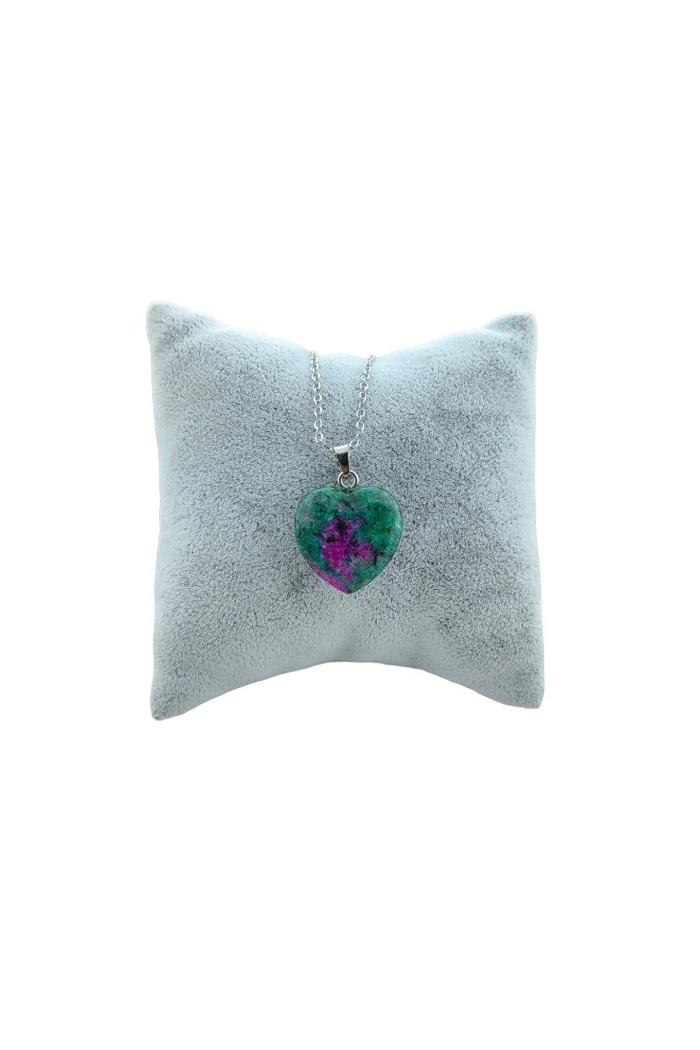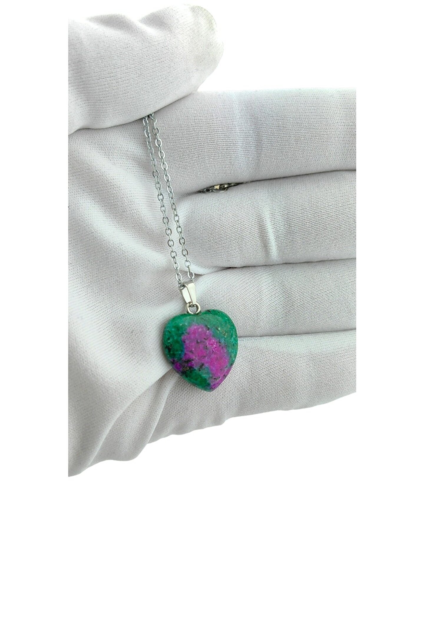 Doğal taş kullanımı sayesinde her kolye benzersiz ve otantik bir görünüm sunar; Kalp şeklindeki tasarımıyla hem şıklığı hem de zarafeti bir arada barındırır; Herhangi bir yapay işlem görmemiş olması, doğallığını korur ve uzun süreli kullanım için idealdir; Taşın renk ve desenleri, her kıyafetle kolayca uyum sağlayarak stilinizi tamamlar;