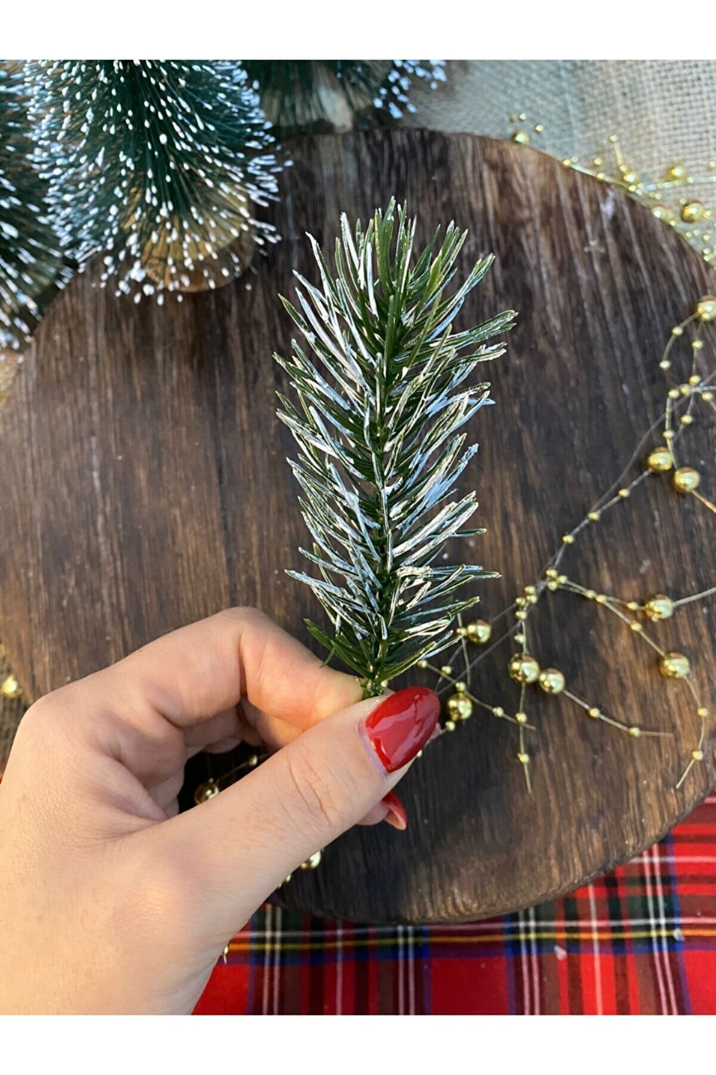 Motif Aksesuar 10lu Set Karlı Görünümlü Çam Dalı Seti - Yılbaşı Noel Christmas Süsü