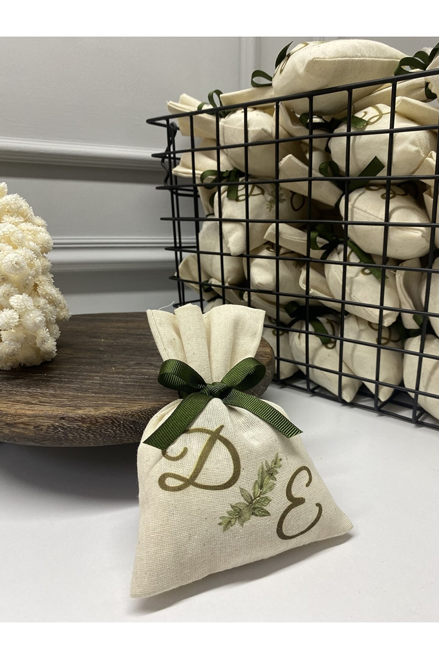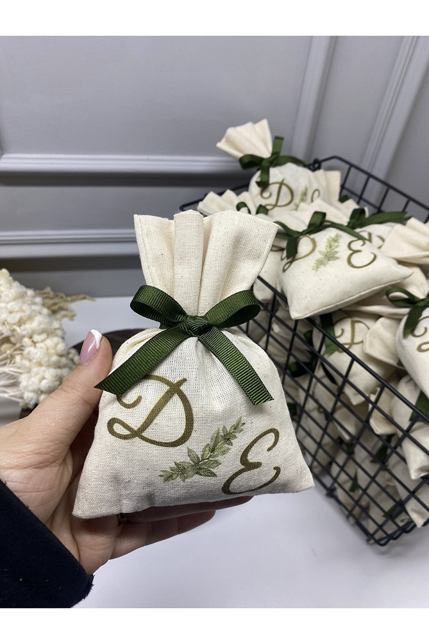 9 * 15 cm ölçülerinde natürel keten kumaş içerisinde elyaf ve lavanta tanecikleri doludur. ; Keselerin tamamı el işçiliğiyle dikilmiştir. ; Ürün kumaşı % 100 pamuktur. ; Üzerine basılmasını istediğiniz harfleri bize sırasıyla satıcıya soru sor kısmından iletmeniz durumunda siparişinize göre özenle hazırlanacaktır. ; Söz,nişan ve nikah gibi özel günleriniz için mükemmel kalıcı bir hediyelik olacaktır. ; 1 tane satın aldığınızda 25 adet dolgulu kese olarak gönderilecektir.;